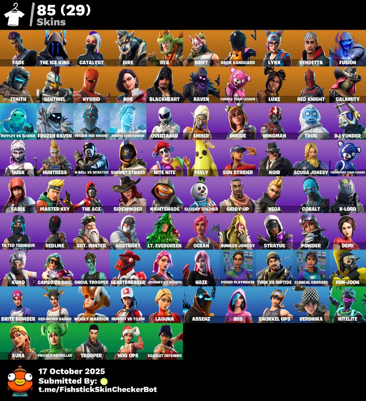 [PC/PSN/XBOX] 85 skins | Fade | The Ice King | Catalyst | Dire | Rex | Drift | Dark Vanguard | Lynx | Vendetta | Fusion | Zenith | Sentinel | Hybrid | Rox | 400 VB