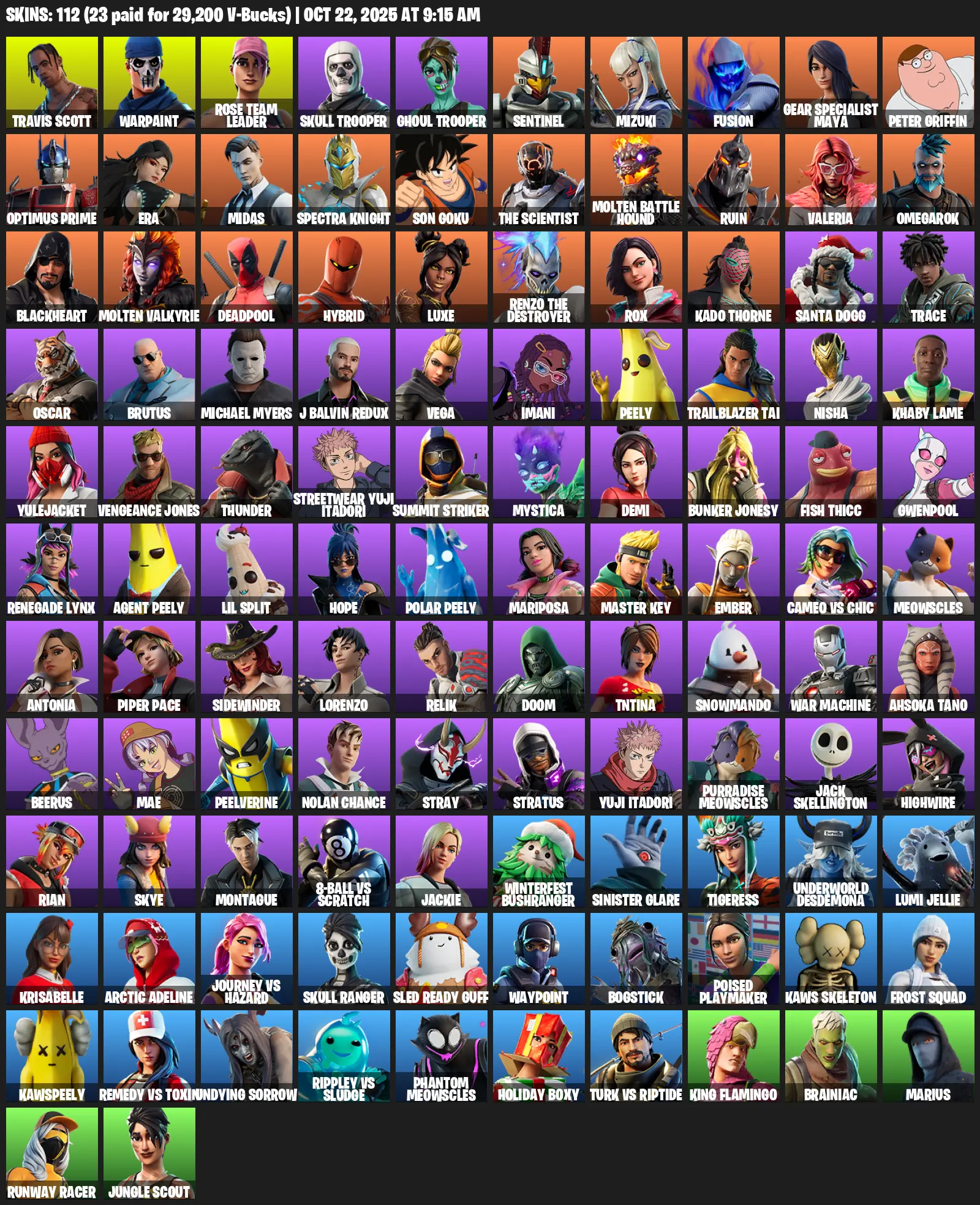 [PC/PSN/XBOX] | 112 skins | OG STW | Travis Scott | Warpaint | Rose Team Leader | Skull Trooper | Ghoul Trooper | Sentinel | Mizuki | #PKH4697 | #MBFN