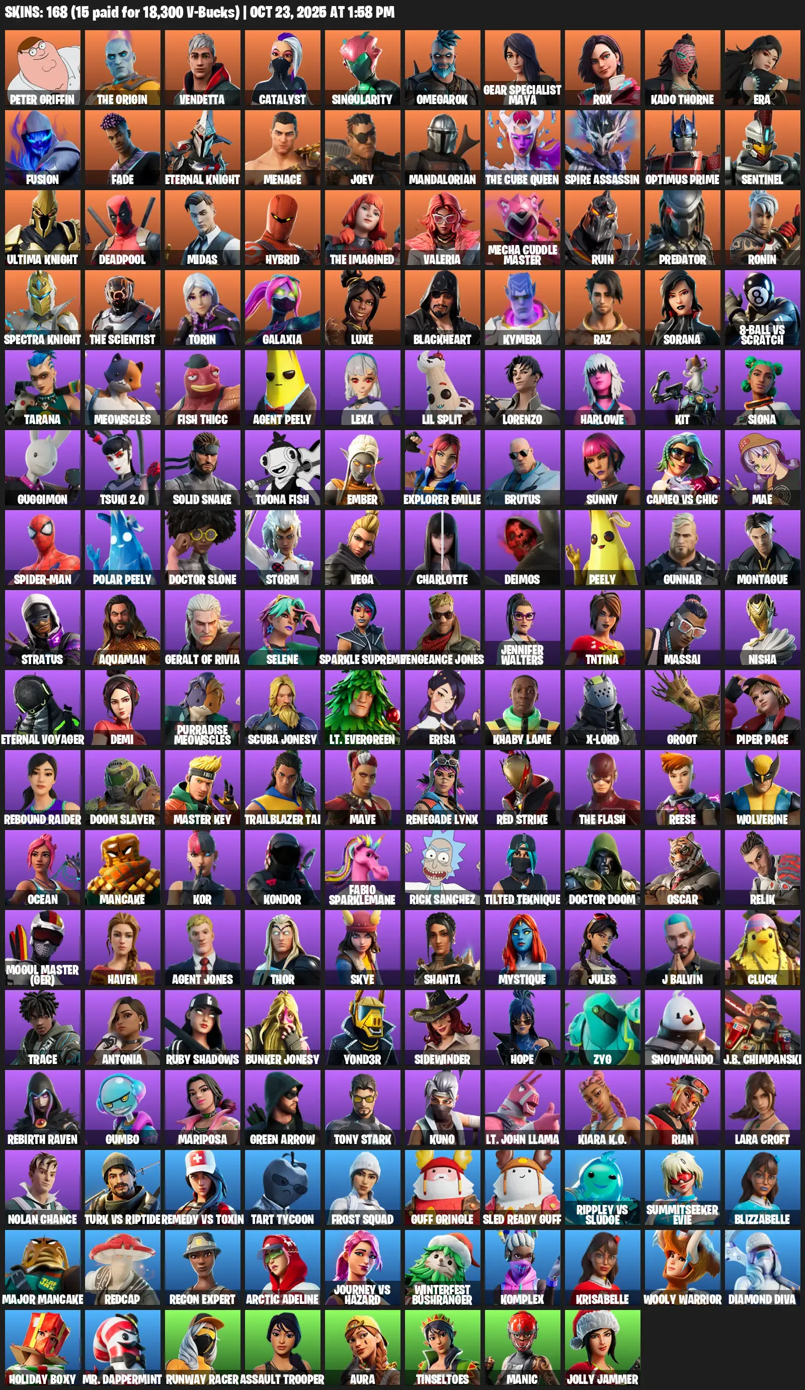 [PC/PSN/XBOX] | 168 skins | 1000 V-bucks | Lara Croft | Peter Griffin | The Origin | Vendetta | Catalyst | Singularity | Omegarok | #WFJ5683 | #MBFN