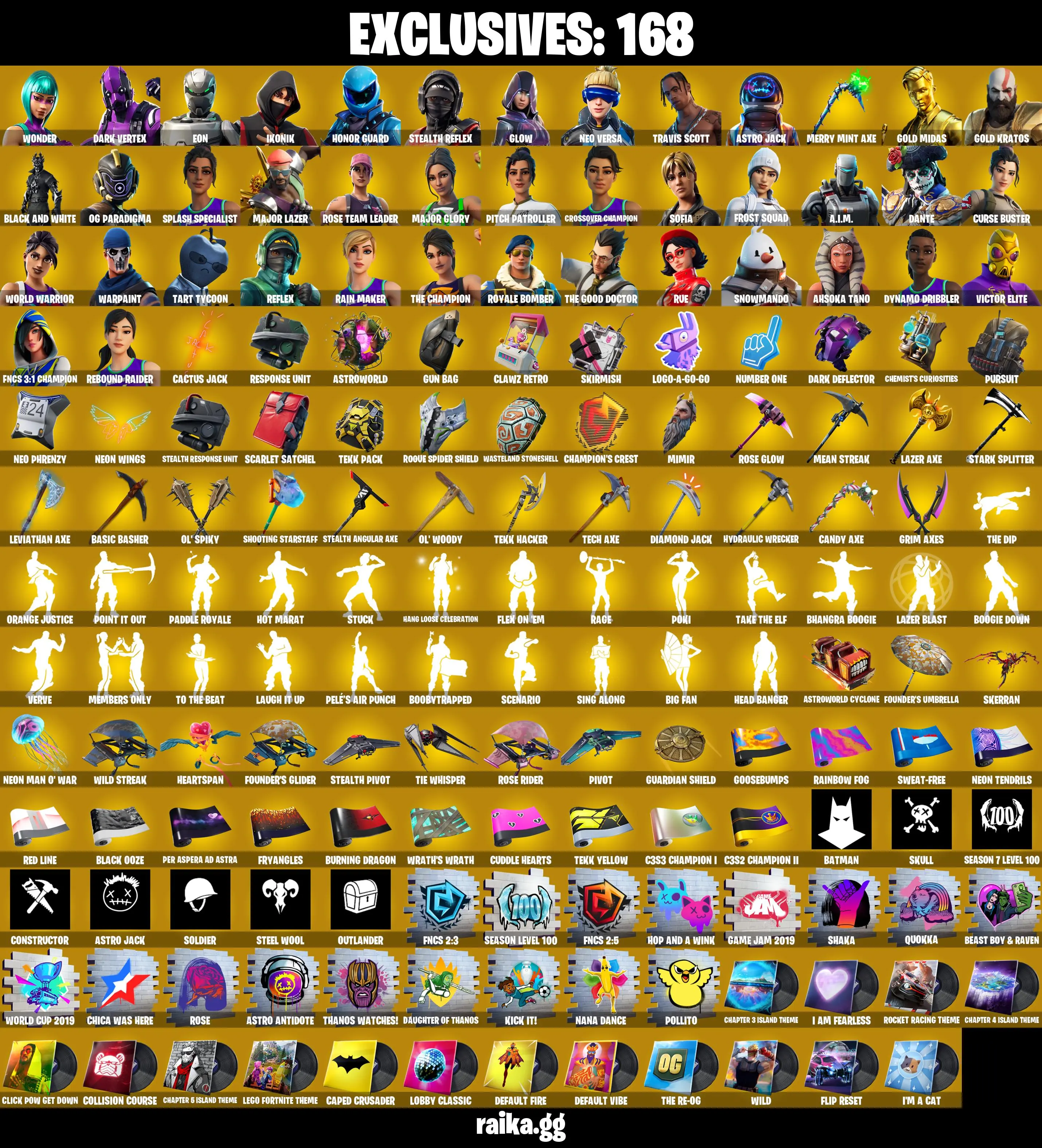 🔆PC/PSN/XBOX🔆757 skins🔆OG STW🔆IKONIK🔆Travis Scott🔆Wonder🔆Dark Vertex🔆Eon🔆Honor Guard🔆Stealth Reflex🔆Rogue Spider Knight🔆Kratos🔆Minty Axe🔆Leviathan Axe🔆ULTRA STACKED EXCLUSIVES ACCOUNT🔆 RARE COMBOS🔆
