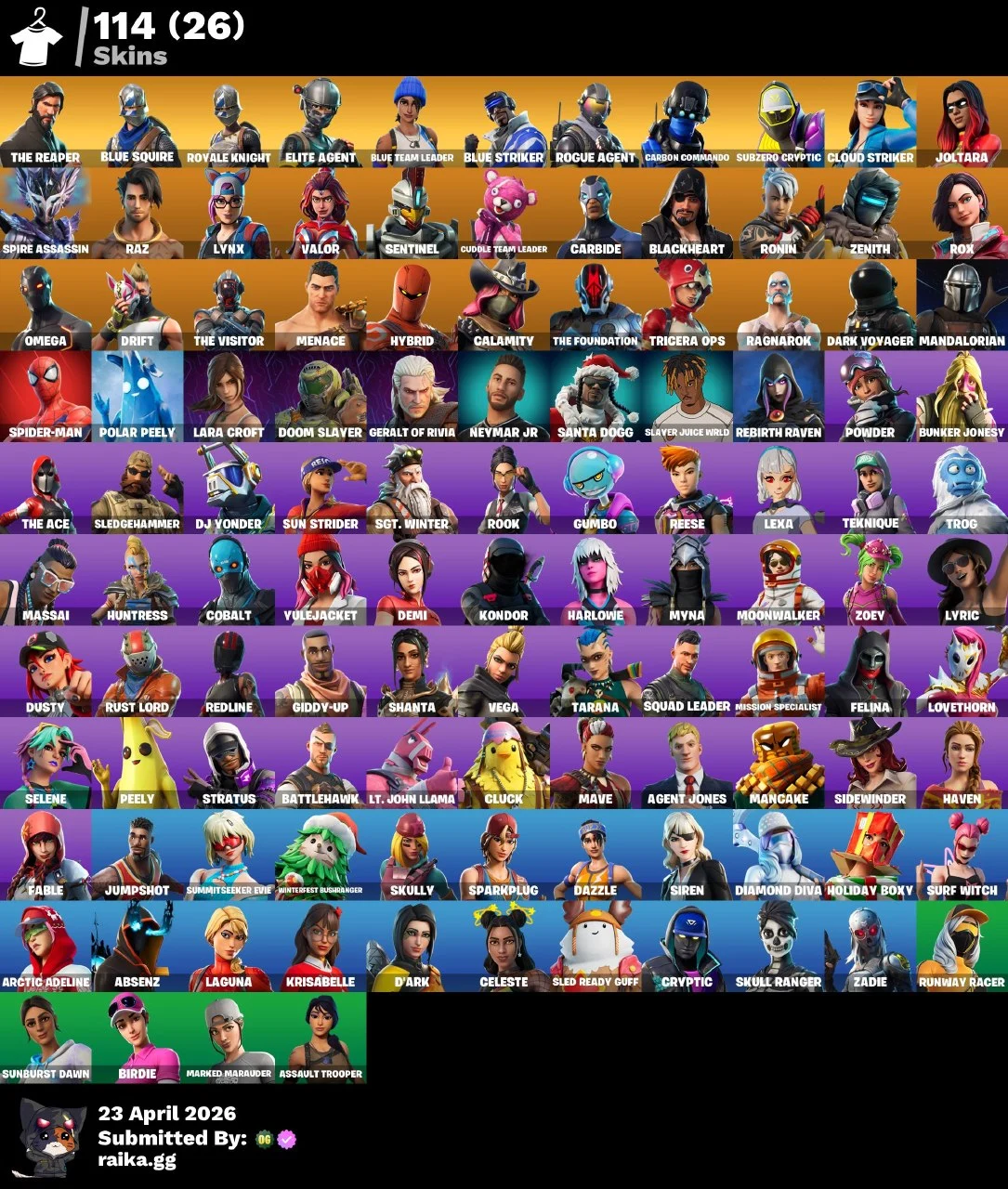 [PC/PSN/XBOX/Nintendo] 114 skins F/A : Leviathan Axe | Take The L | Blue Squire | Royale Knight | The Reaper | Elite Agent | Blue Team Leader | Blue Striker | Subzero Cryptic | Cloud Striker