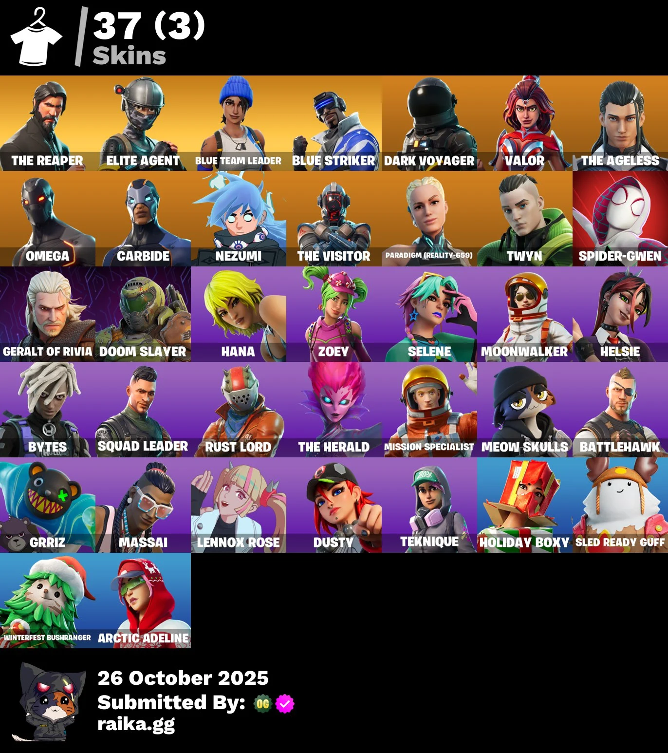PC/PSN/Xbox/Nintendo 37 skins | The Reaper | Elite Agent | Blue Team Leader | Blue Striker | Dark Voyager | Valor | The Ageless | Omega | Carbide | Nezumi | 100 VB