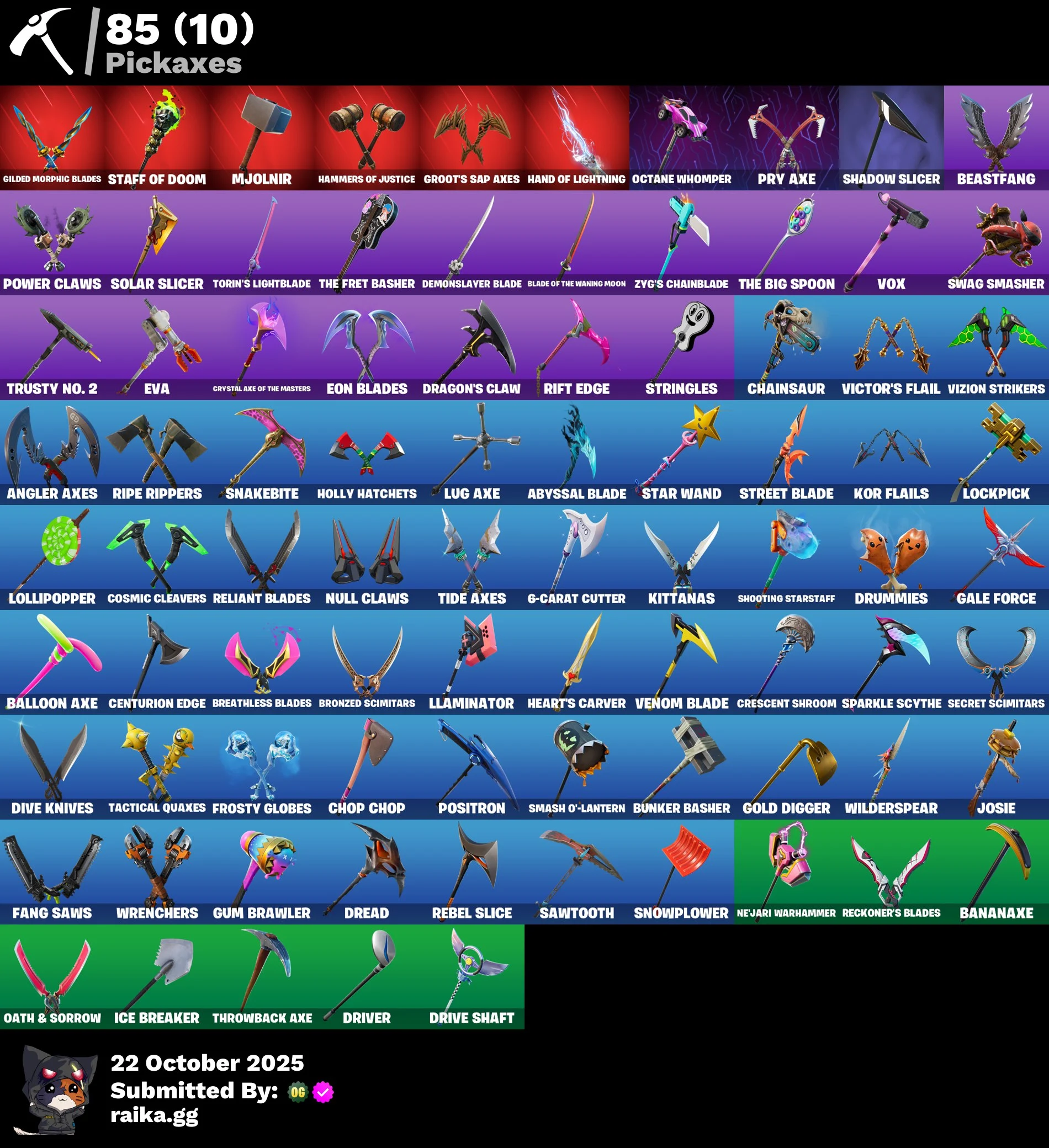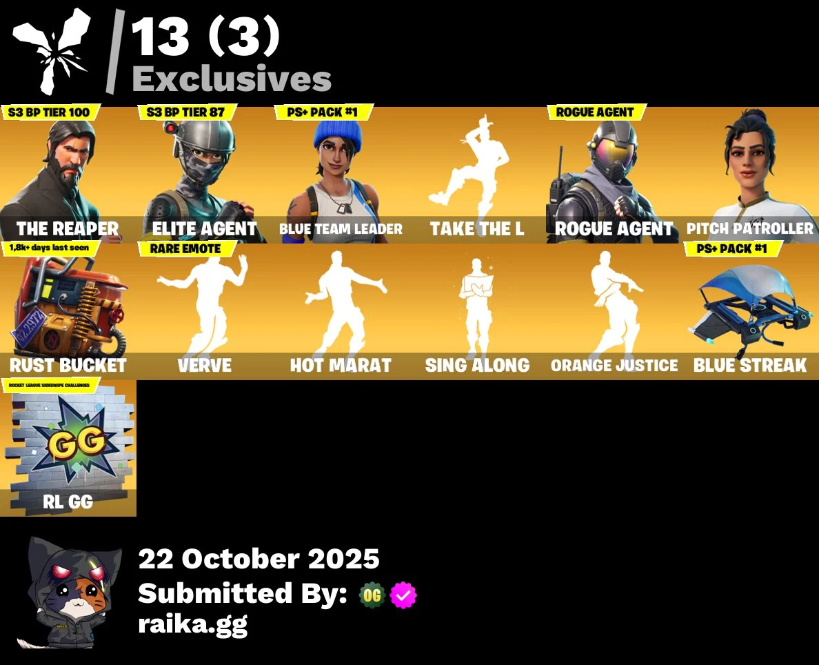 PC/PSN/Xbox/Nintendo 98 skins | The Reaper | Elite Agent | Blue Team Leader | Rogue Agent | Pitch Patroller | Eternal Knight | Carbide | Blackheart | Sentinel | 100 VB