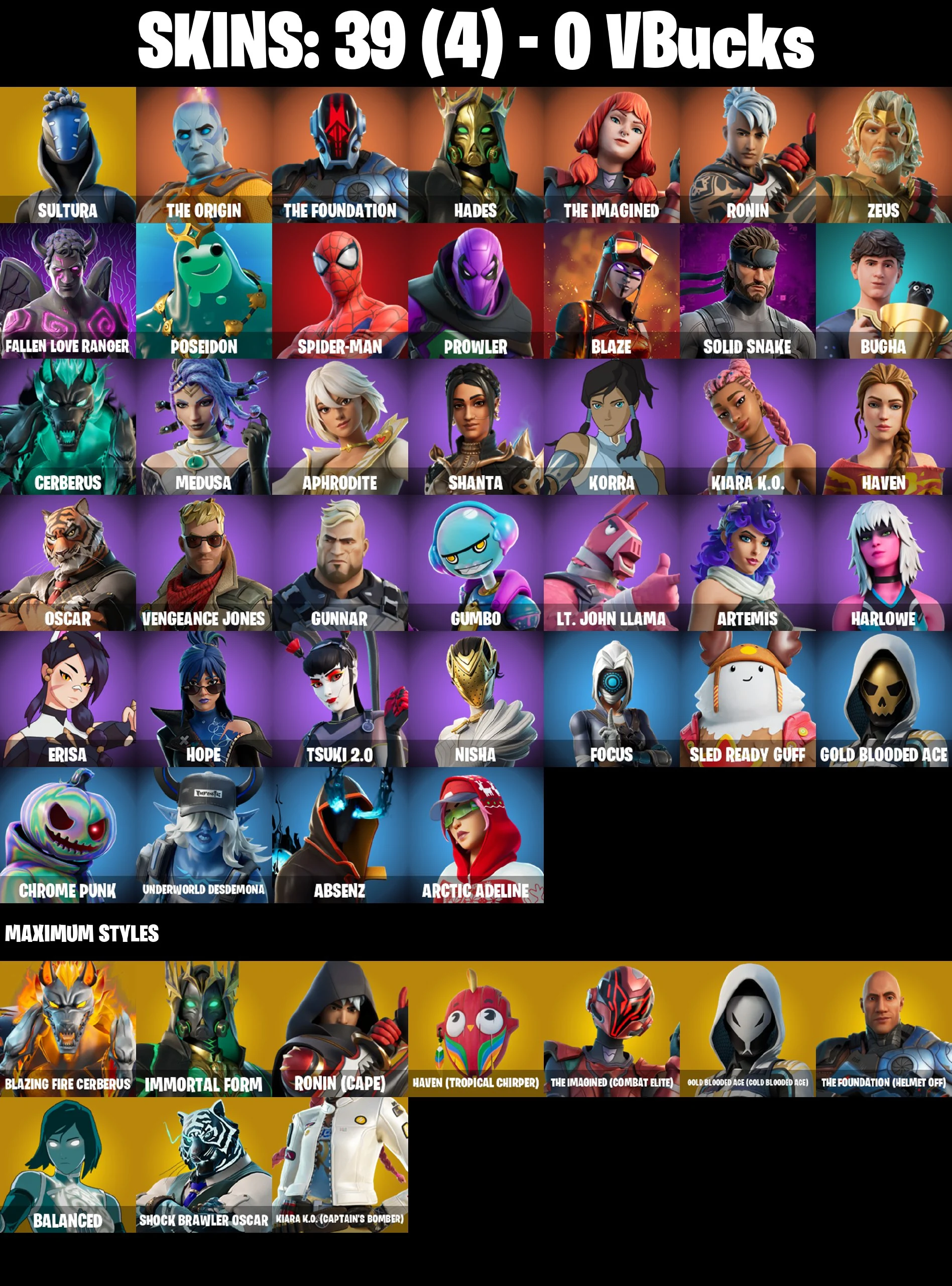 ⭐ [PC/PSN/XBOX/NINTENDO/MOBILE] 39 SKINS | SPIDER-MAN | SULTURA | BUGHA | FALLEN LOVE RANGER | OSCAR | NISHA | FOCUS | GET GRIDDY | MY WORLD | SNOWSUITED | 0 VBUCKS | EMAIL