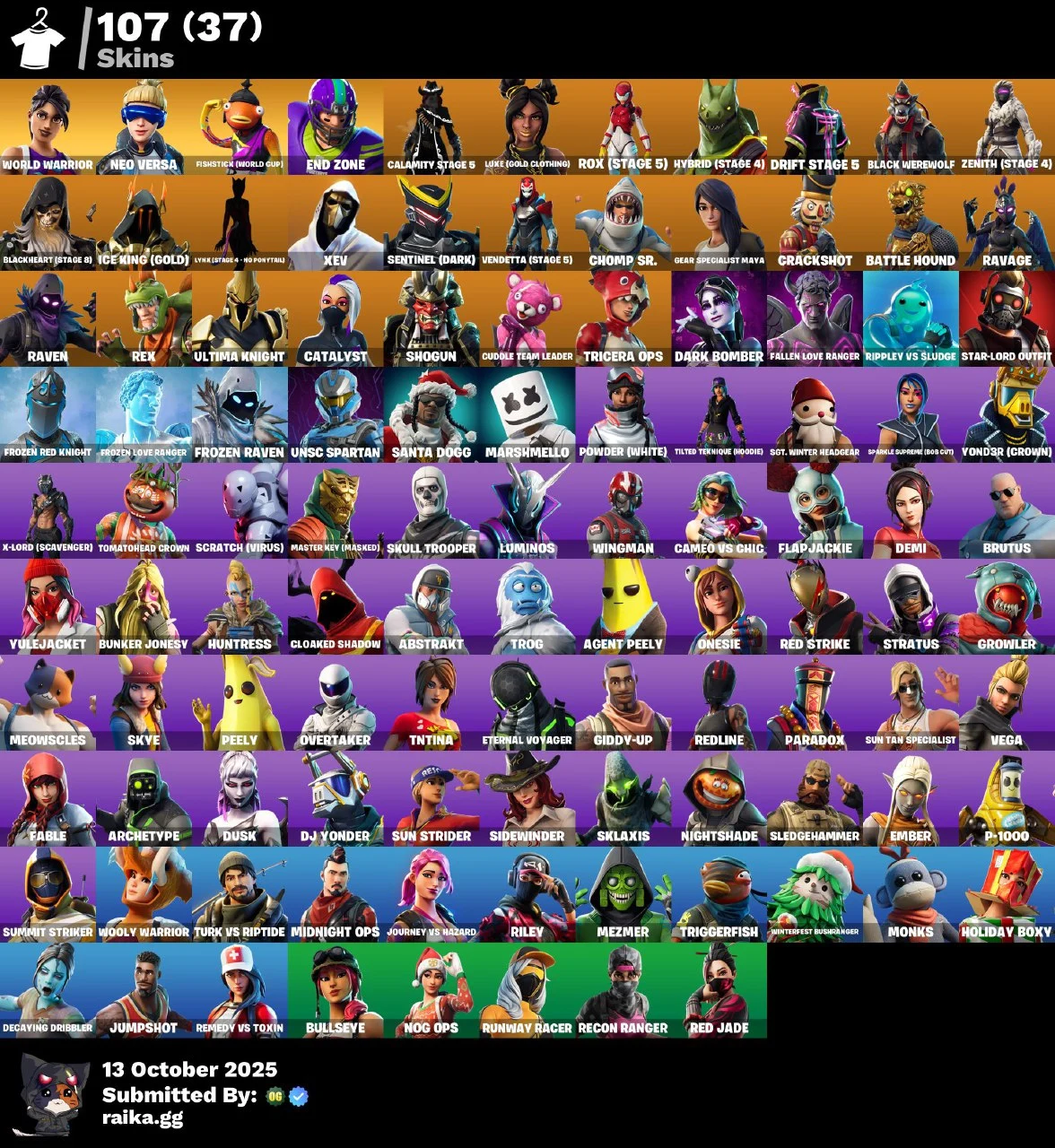 [PC/XBOX] 107 skins | Raven | Peely | World Warrior | Catalyst | Plunja | Neo Versa | Star-Lord Outfit lai305
