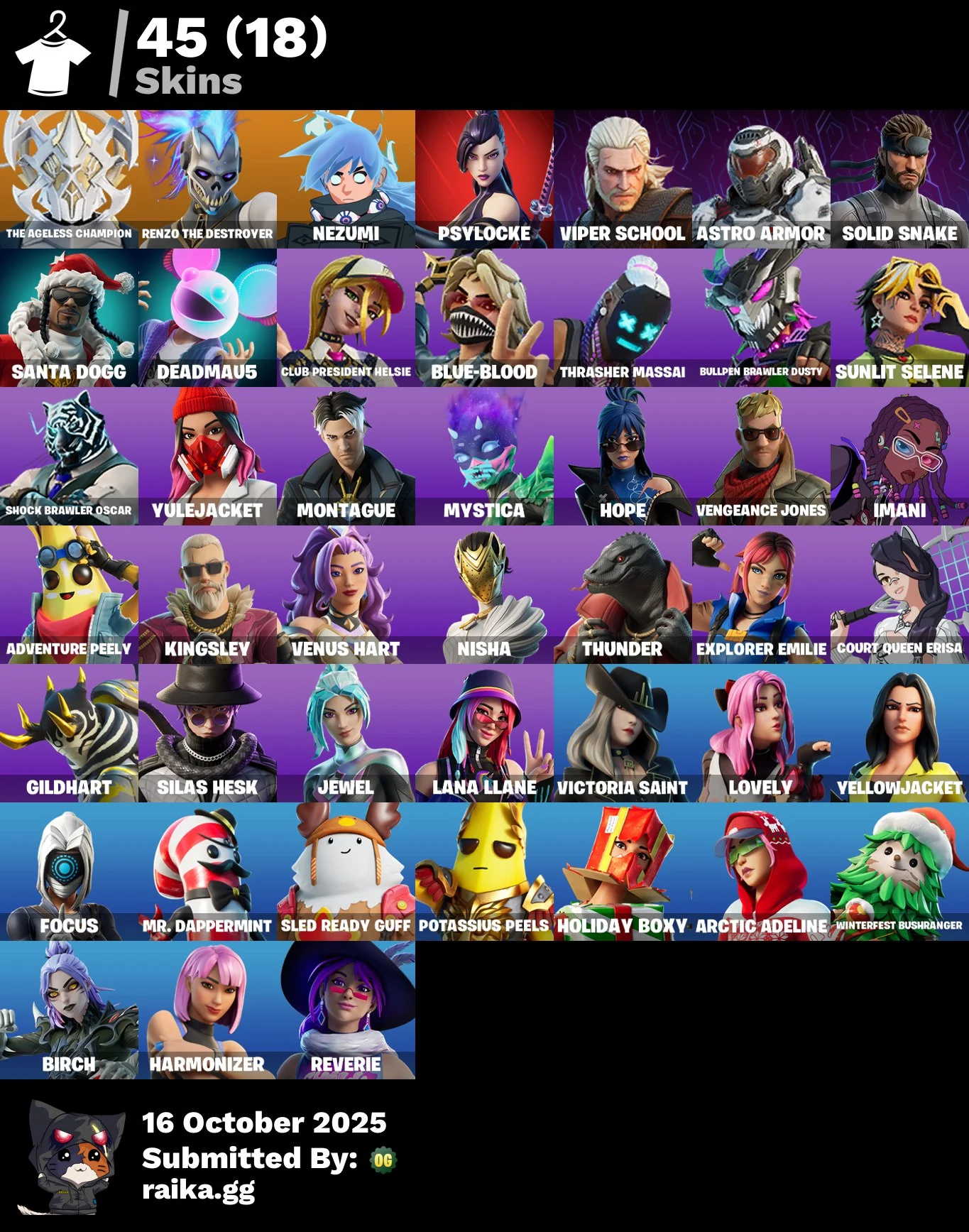 [PC/XBOX] 45 skins | The Ageless Champion | Renzo the Destroyer | Nezumi | Psylocke | Viper School lai412