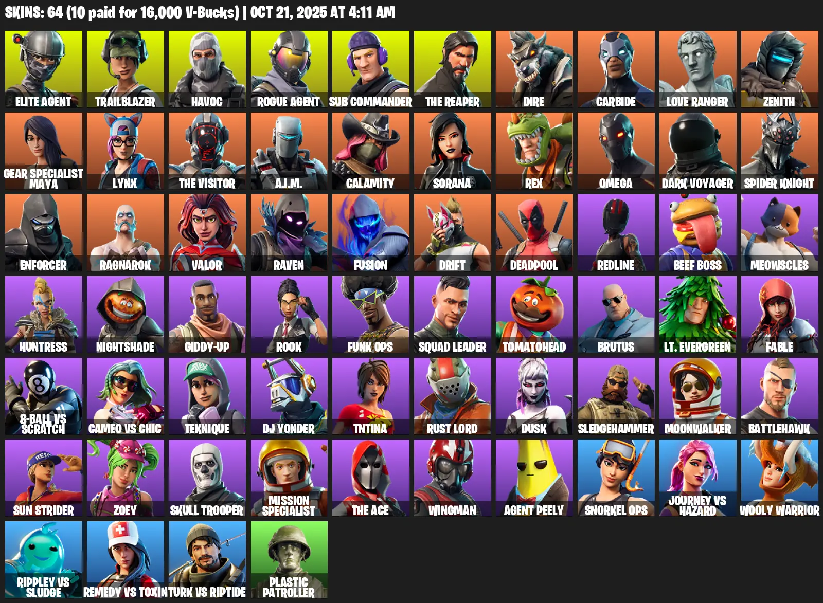 [PC/XBOX/PSN] 64 Skins | Elite Agent | Trailblazer | Havoc | Rogue Agent | Sub Commander | The Reaper | Dire | Carbide | Love Ranger | Zenith | Gear Specialist Maya | Lynx | The Visitor | A.I.M. | Calamity | Sorana | Rex | Omega | Dark Voyager