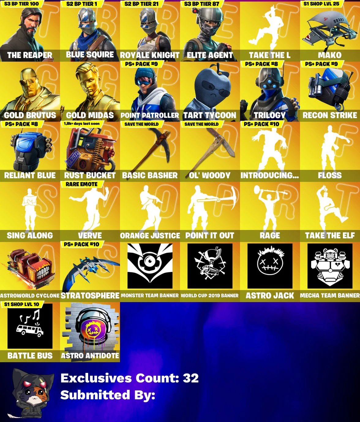 🎒🔥 STACKED OG ACCOUNT 🔥🎒 90 SKINS 💎 THE REAPER 💎 FLOSS 💎 TAKE THE L 💎 BLUE SQUIRE 💎 ROYALE KNIGHT 💎 ELITE AGENT 💎 GOLD BRUTUS 💎 GOLD MIDAS 💎 POINT PATROLLER 💎 TART TYCOON 💎 TRILOGY 💎 OMEGA 💎 THE VISITOR 💎 FULL ACCESS 💎