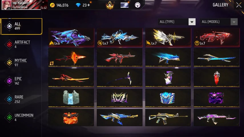 G-FF09| IDN| Lv71 ⸱ Elite Heroic ⸱ 4 Artifact (x1 Lv7) and 82 Mythic Gun ⸱ 117 Fashion Bundle