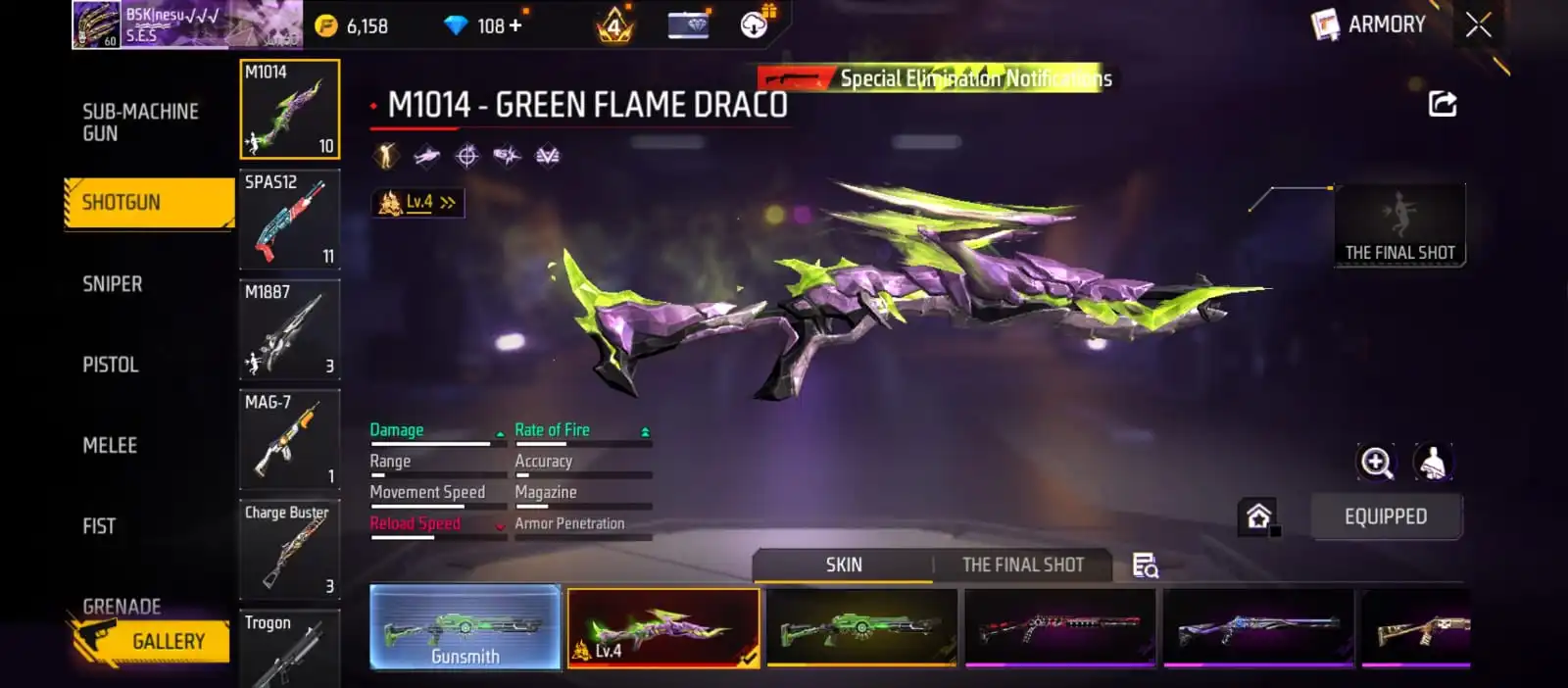 V32|LVL60|353COSTUME(17MYTHIC)|374WEAPON(1EVO+74MYTHIC)|GREENFLAMEDRACO-M1014LVL4|APOCALYPTICGREEN-M1014|TERRANOBURST-M1887