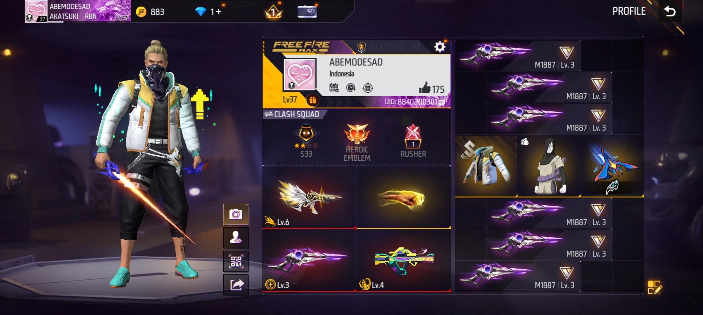 WR06|LVL37|37 COSTUME( 2 MYTHIC)|39WEAPON( 3 EVO+10MYTHIC)MP5 PLATINUM DIVINITY LVL-6lGROZA BANG! POPBLASTER LVL-4lM1887 STERLING CONQUEROR LVL-3