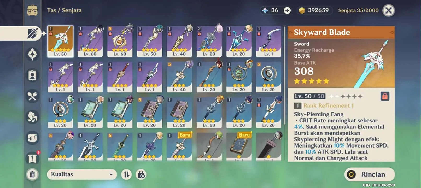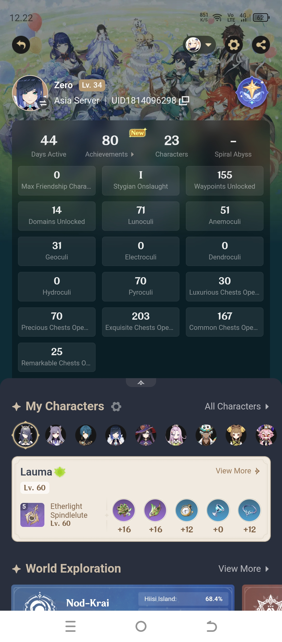 🔥 ASIA Server | Ar 34 | 23 Characters | 5 Char *5 | (Lauma Keqing, Yelan, Mona, Traveler) | All Items Good | SAFE ACC 🔥