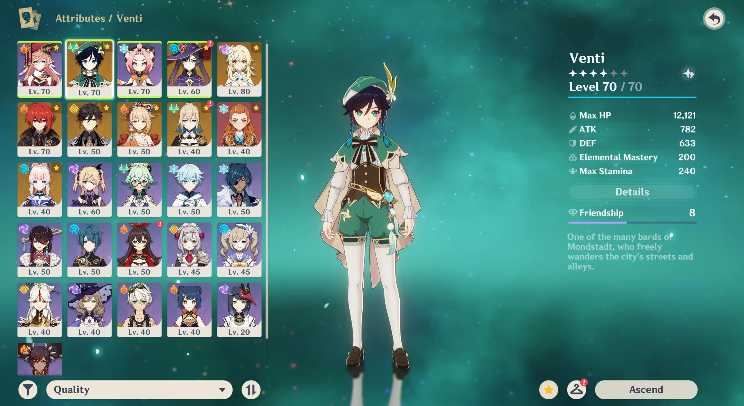 NA AR45 | 5 stars*9 VENTI | ZHONGLI | YOIMIYA | KOKOMI | MONA(C2) | DILUC | JEAN | AMOS' BOW | SKYWARD PRIDE + lots of 4* characters and weapons