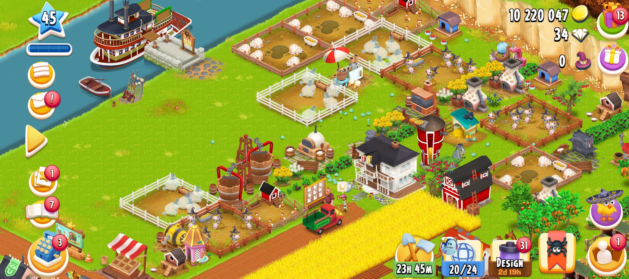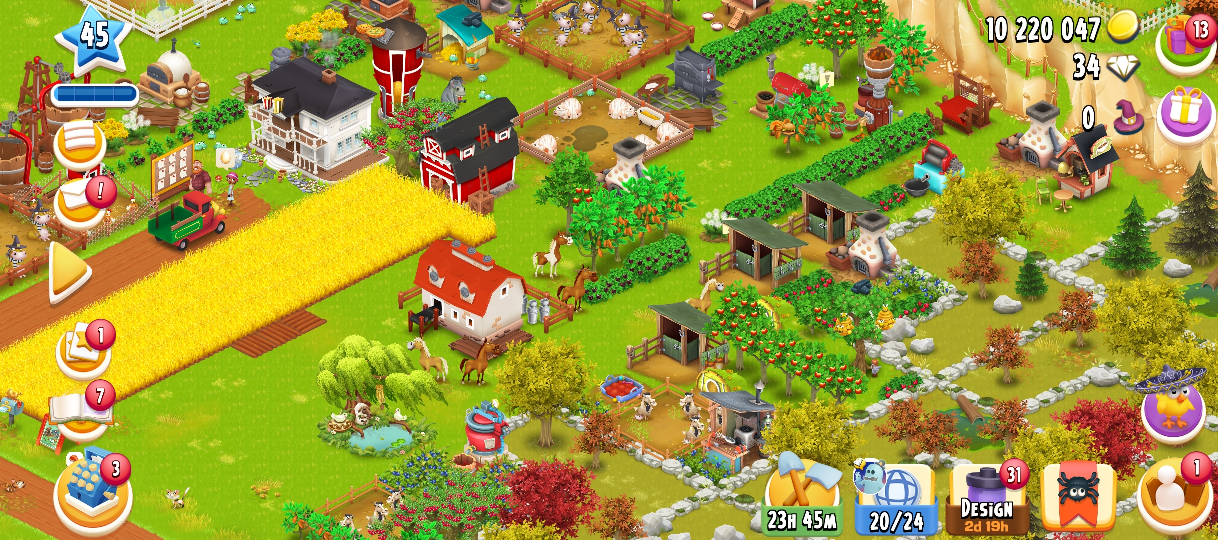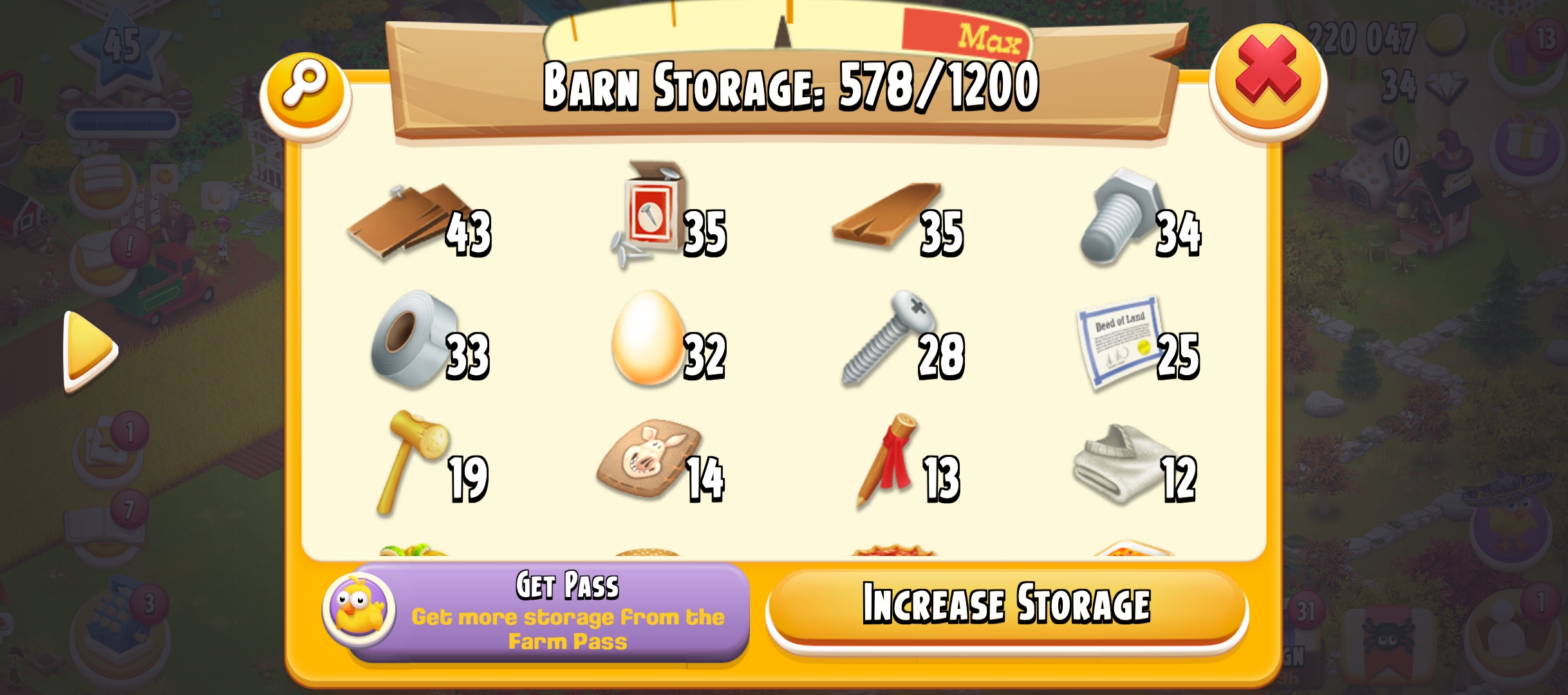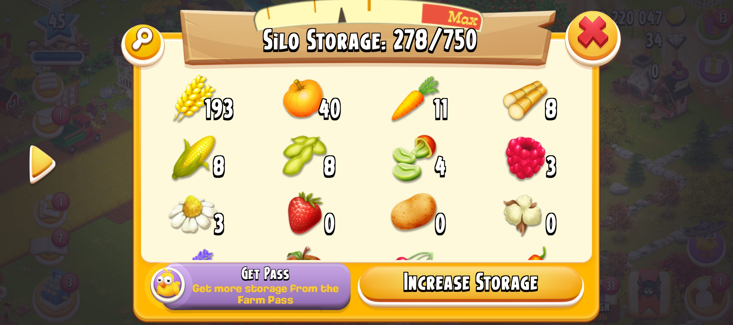 45 Level | Barn Storage 1250 | Silo Storage 750 | 10 M Coin | 60 Gems | Android & IOS
