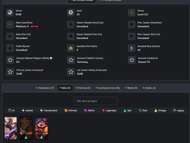 Wat zit er bij Platinum League of Legends accounts te koop?