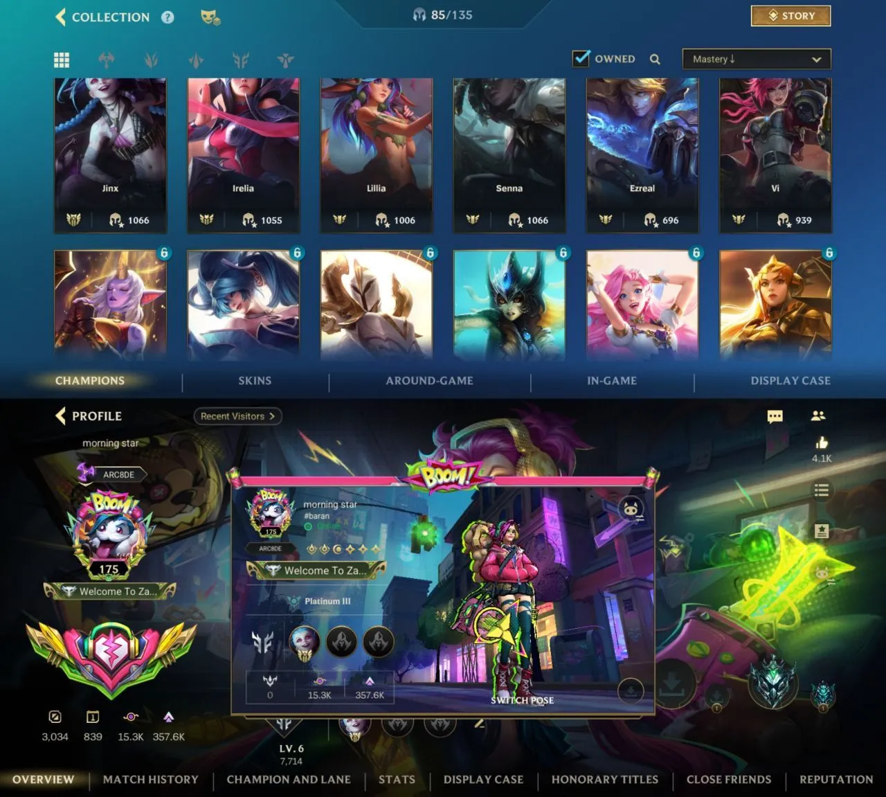 iOS/Android 🎮 EU 🌐 Level 175 🌟 Champions 85 🎖️ Skins 66 🛍️ Legendary 5 🧨 Code1286