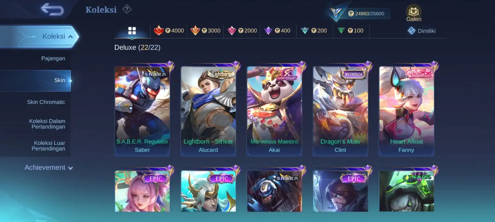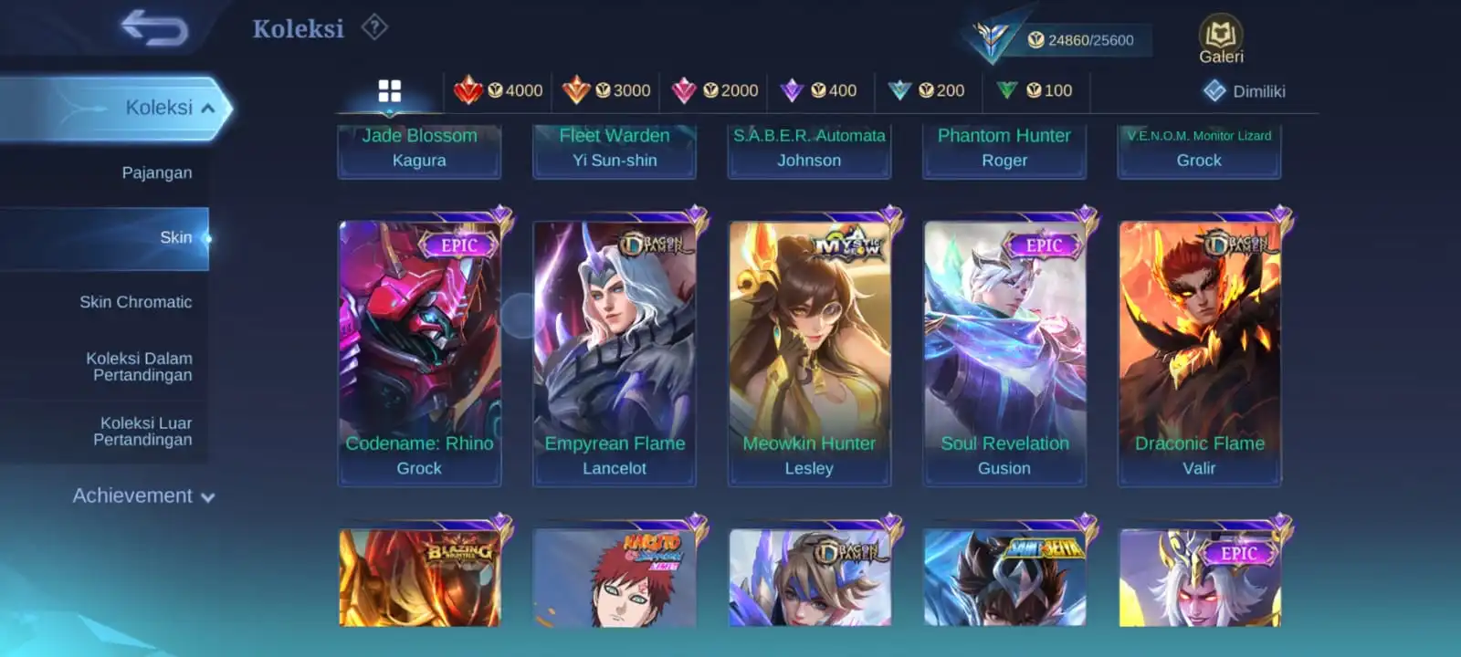 BEST MEGA DEAL✨HERO 66✨SKIN 109 ✨EMBLEM MAX ✨NATALLIA CC✨VALE NARUTO✨BADANG SEIYA ✨FANNNY VALENTINE✨LEO MSC✨MYTH CLINT✨4x DRAGON✨DELUXE 22✨EXCEPTIONAL 21✨CHROMATIC 13✨SAFE ACC✨INSTAN DELIVERY