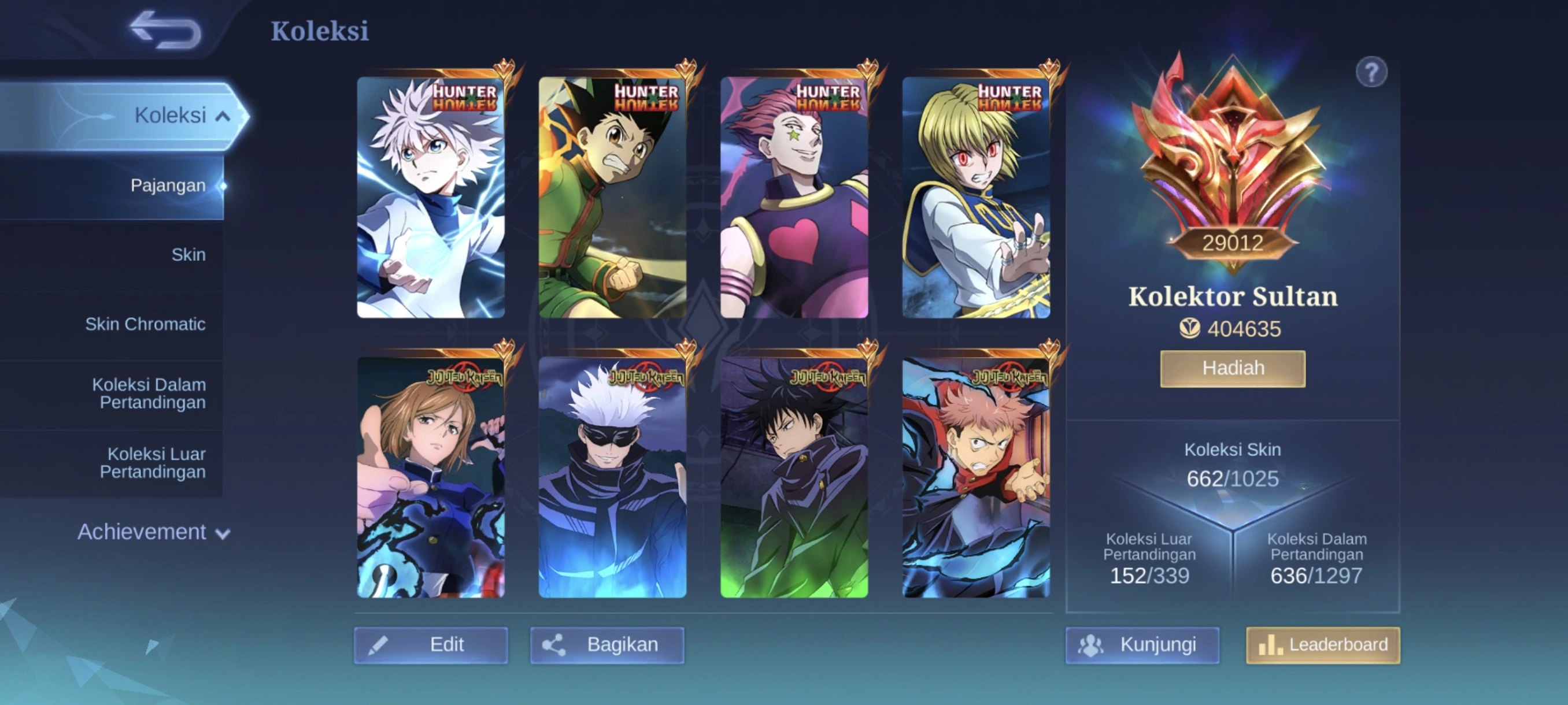 MM303|L98|662Skin|WORLDCOLLECTOR|6Legend|FullKOF|FullHxH|FullJJK|FullExorcist|6Aspirants|FullStarWars|FullDucati|2SoulVessels|AOT Yin|AllStar Moskov|Sasuke|2Zenith