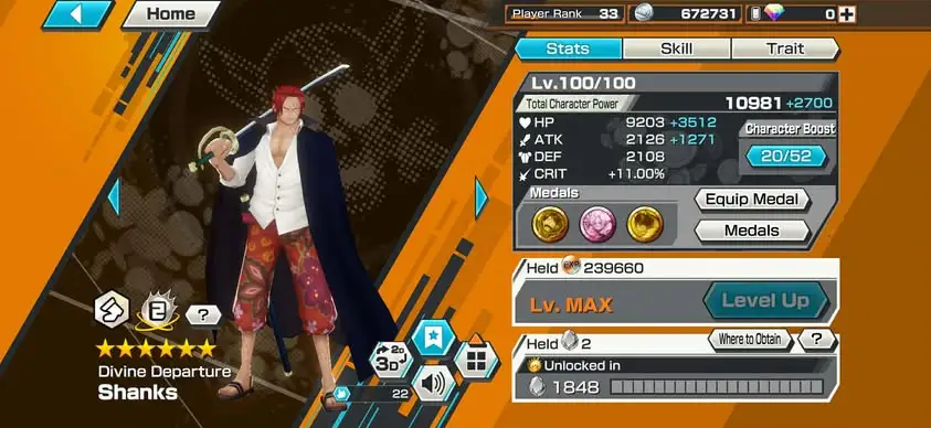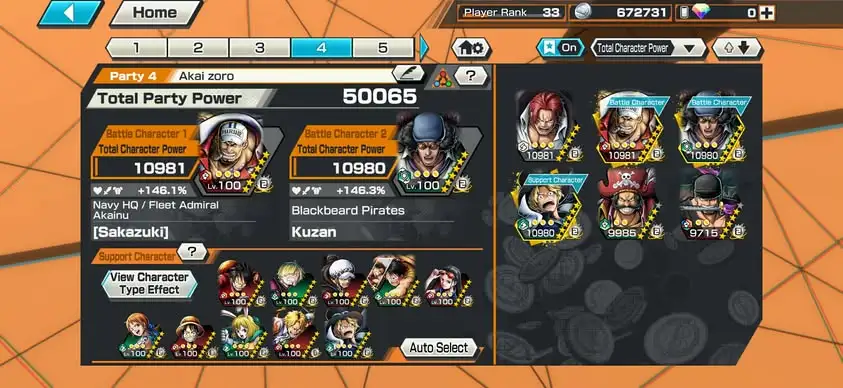 [4169][IOS+ANDROID] 6 EX / 4 MAX / Sabo + Kuzan + Akainu + Roger + Shanks Light + Zoro , Support 146% , Good Medal