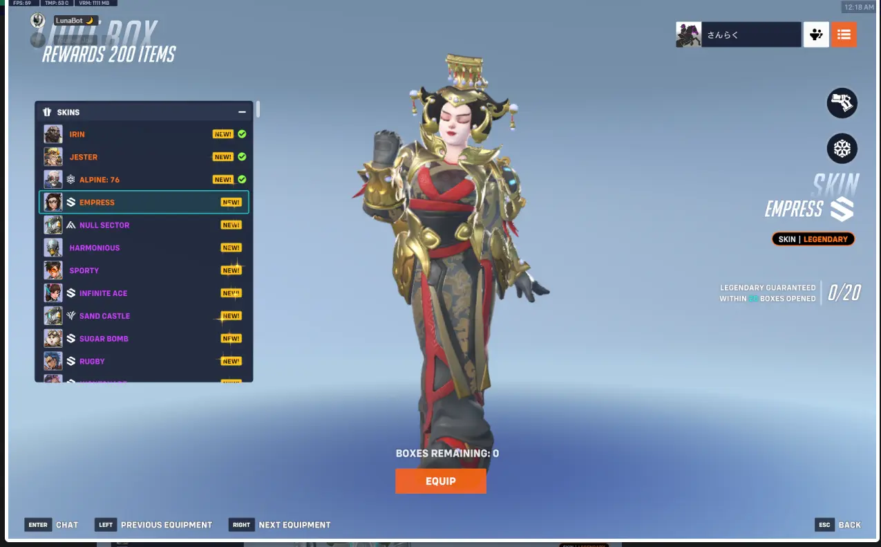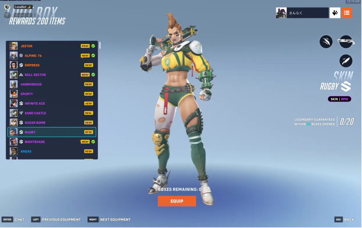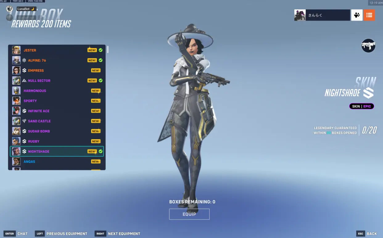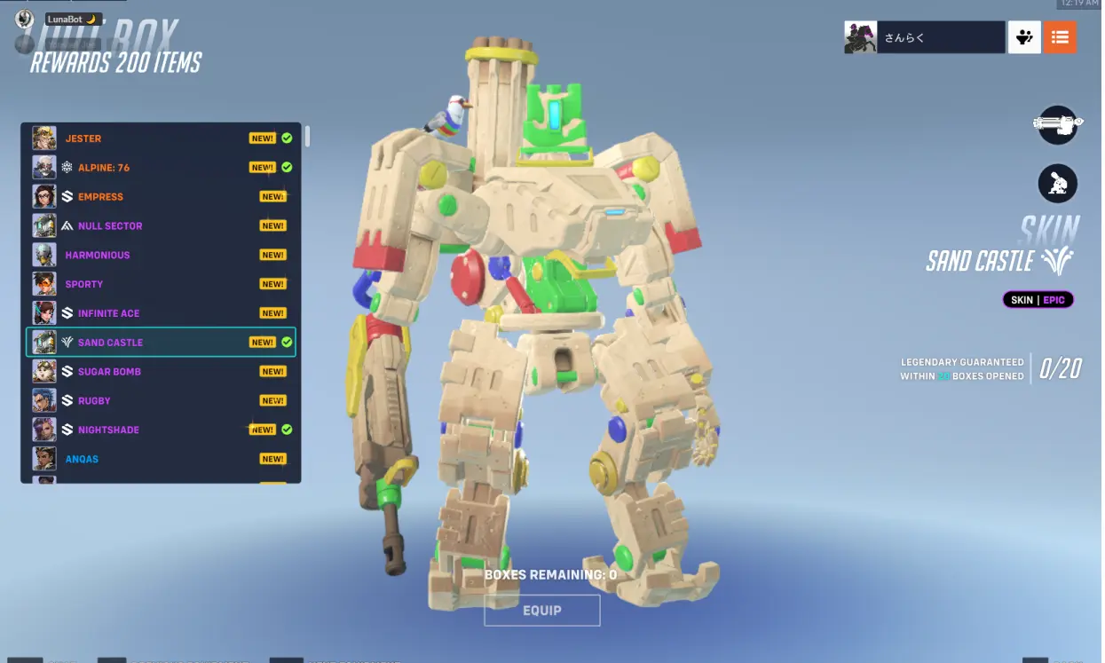 Unique Japanese Name Account with Skins : Nightshade Sombra / Rugby JQ / Empress Mei / Infinite Ace Dva / Sand Castle | 20+ Wins Ready for Ranked Smurf with Special name