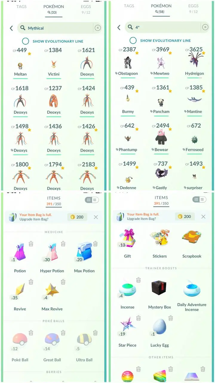 70% OFF🧿PREMIUM ACCOUNT🧿YEAR 2020🧿LVL 43🧿POKEMON 894🧿LEGENDARY 189🧿SHINNY 126🧿LEGENDARY+SHINNY 11🧿COSTUME 26🧿MYTHICAL 33🧿HOUNDO 58🧿ITEMS 391🧿