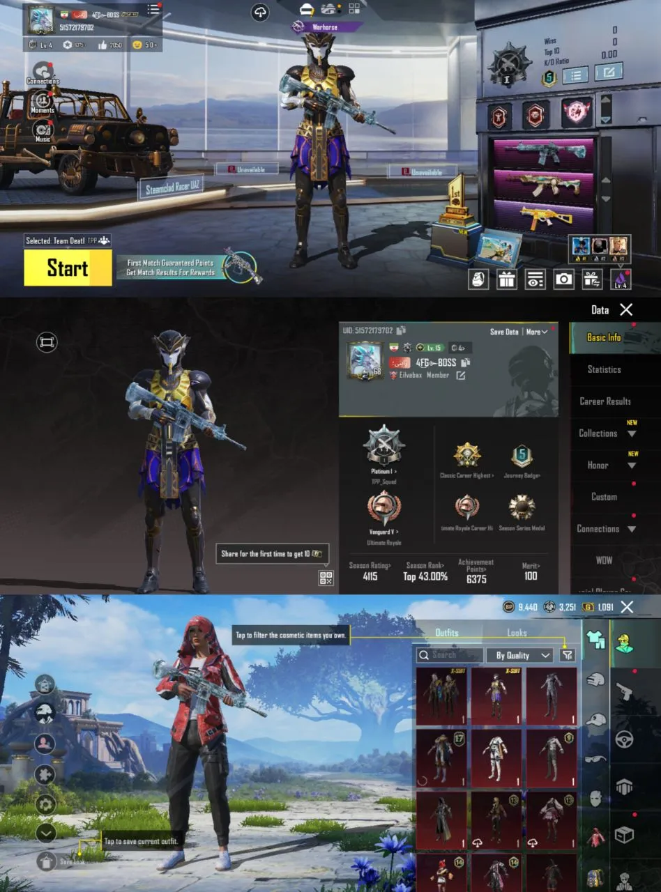 iOS Android 🎮 Level 68 🛍️ 2 X Suit Pharaoh 🌟 M416 Glacier Kill 🎖️ Collection Good 🥶 Code1036