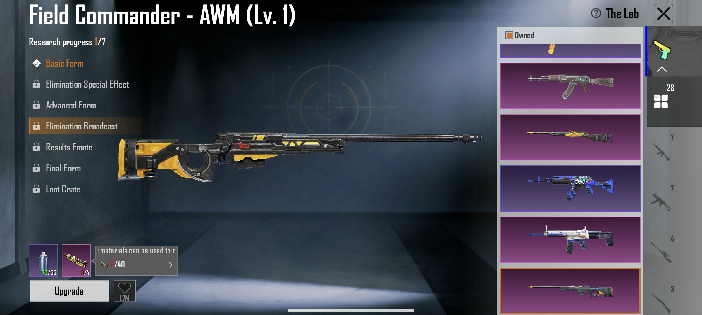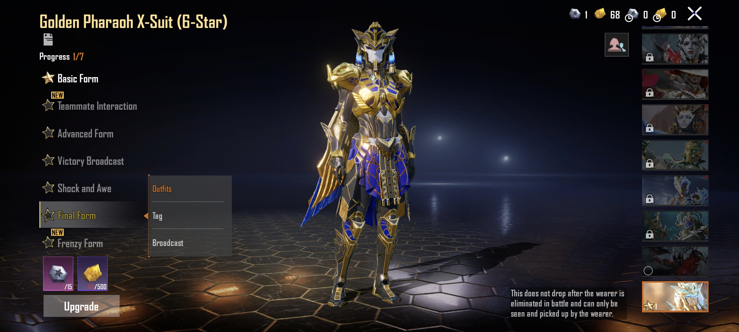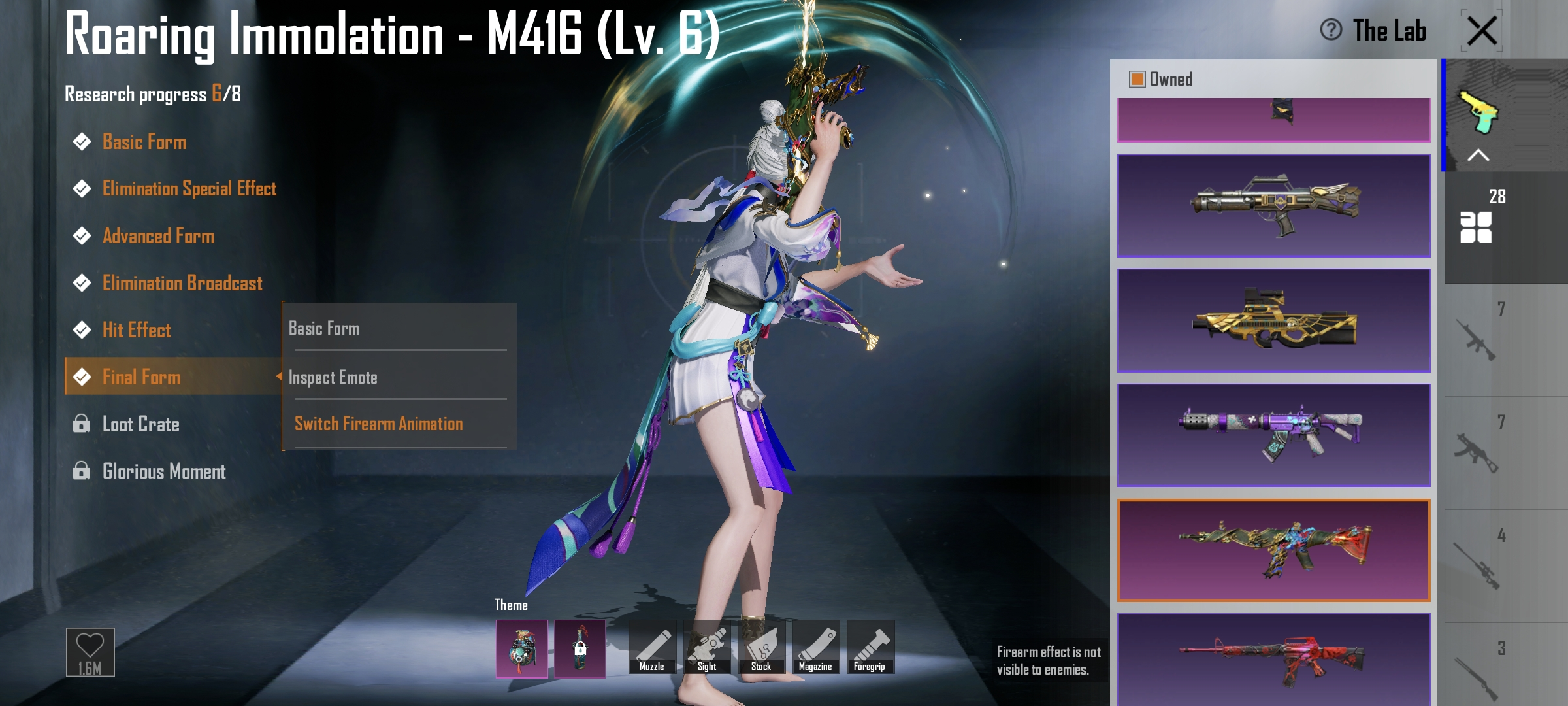Roaring Immolation M416(Lv.6) | 2 X suit ( Golden Pharaoh, Galadria) | C3S9 Conquerer | 3 mythic lobby | 28 gun lab
