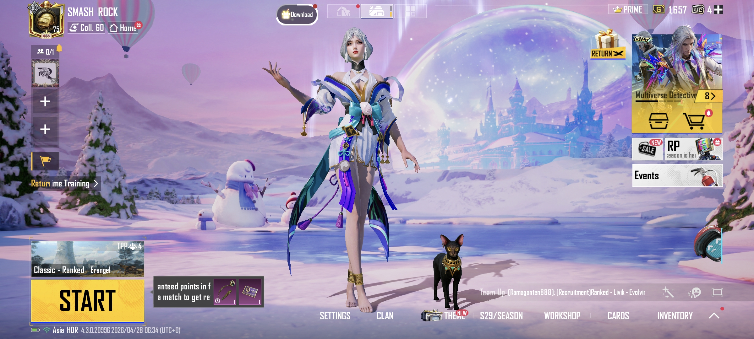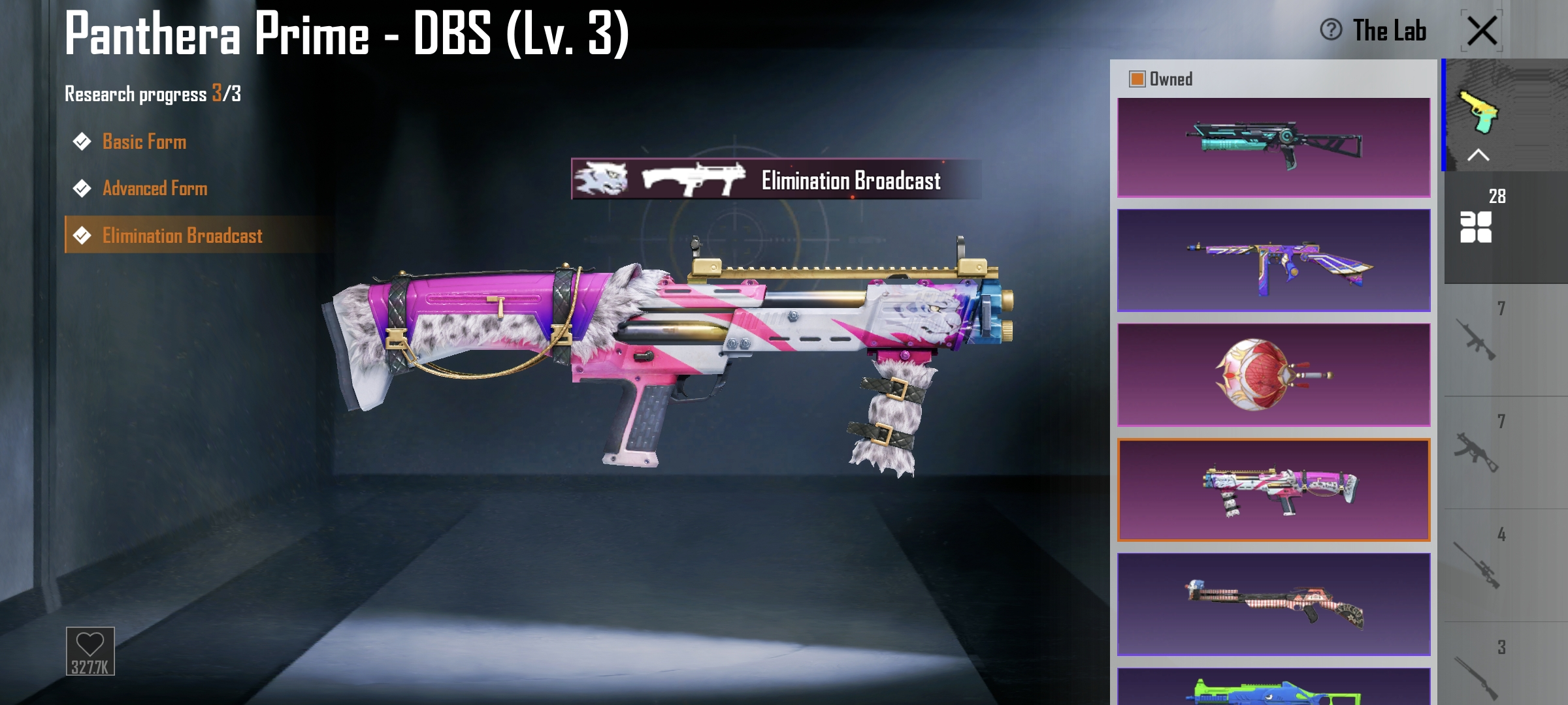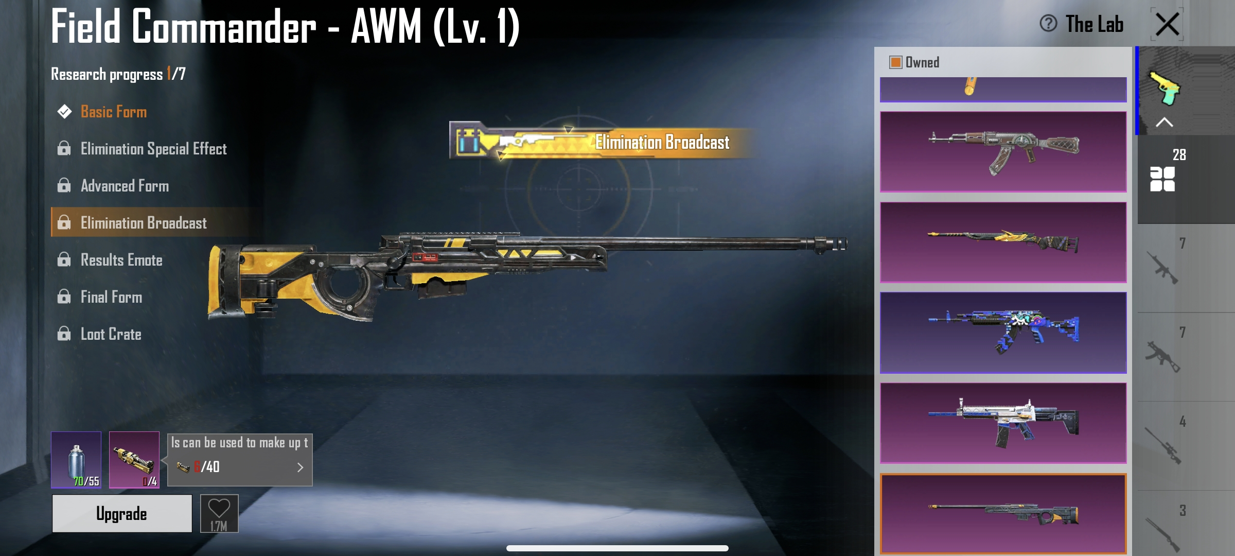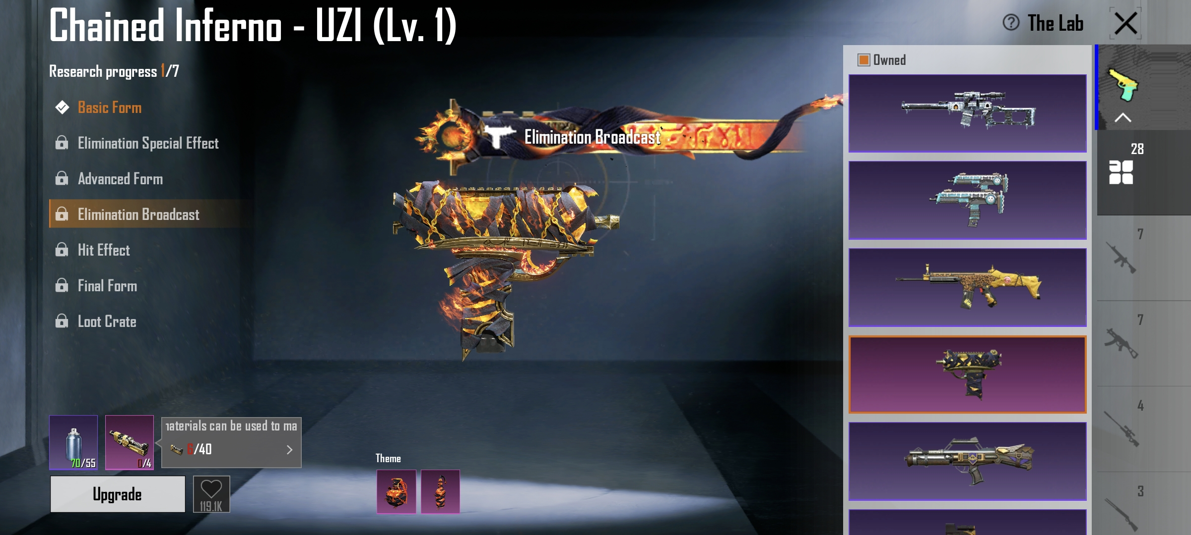 Roaring Immolation M416(Lv.6) | 2 X suit ( Golden Pharaoh, Galadria) | C3S9 Conquerer | 3 mythic lobby | 28 gun lab
