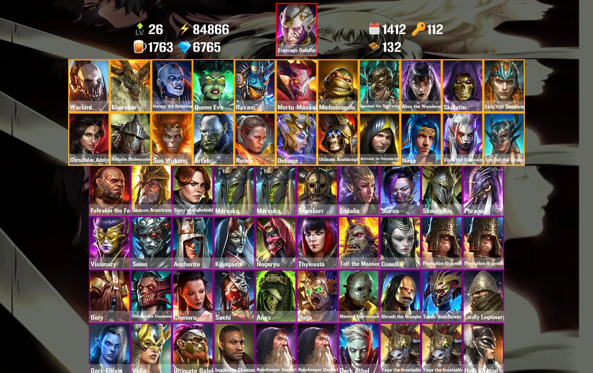 1412 Days 84.9k Energy [Mythical Starter] Starsage Galathir βΈ± Warlord βΈ± Khoronar βΈ± Narma the Returned βΈ± Queen Eva βΈ± Roxam βΈ± Fahrakin the Fat βΈ± Deacon Armstrong βΈ± 52.0m Silver βΈ± 6.8k Gems