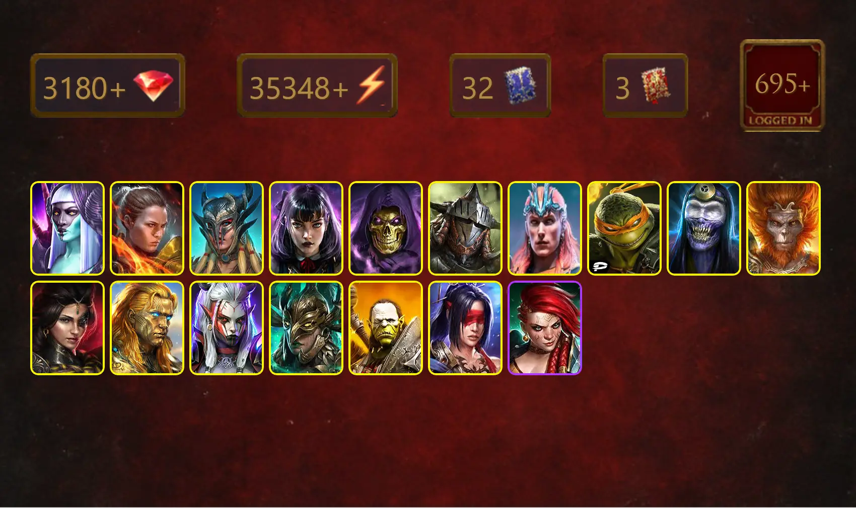 [STARTER]Lilitu+Cardiel+Ronda+Scyl+Alice+Skeletor+Rathalos+Loki+Michelangelo+Gamuran+Wukong+Adelyn+Visix+35Epics