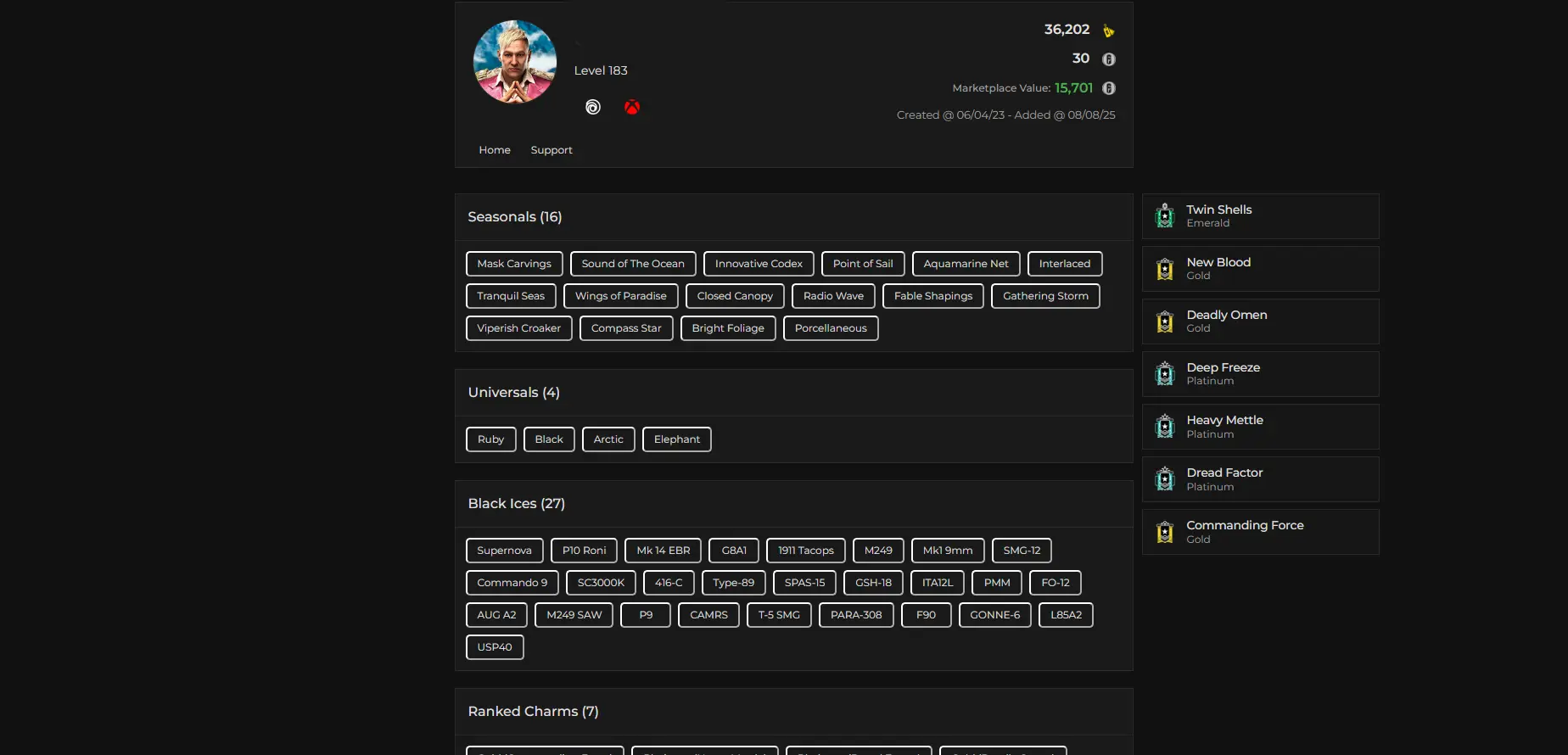 👑【PC/PSN】🎨269 Skins ❄️27 Black Ice 🗓️16 Seasonals 🏆2 Pro League 🌌4 Universals 👑6 E