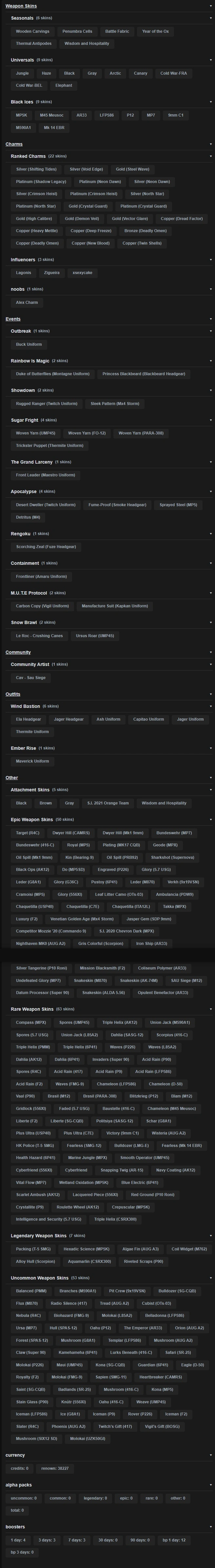 | 59 Operators | 9x Black Ice | 9 Universal Skins | 38227Renown | Full Access β