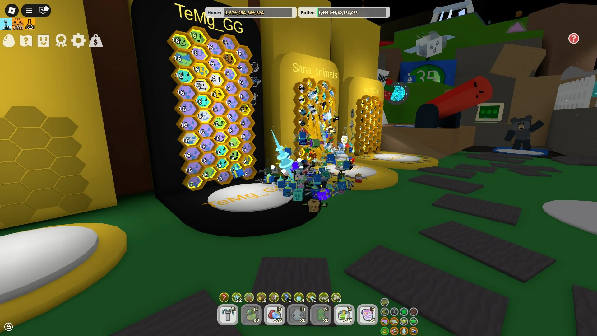 Bee swarm simulator bear bee + cub buddy blue hive + tide popper 16 lvl bees