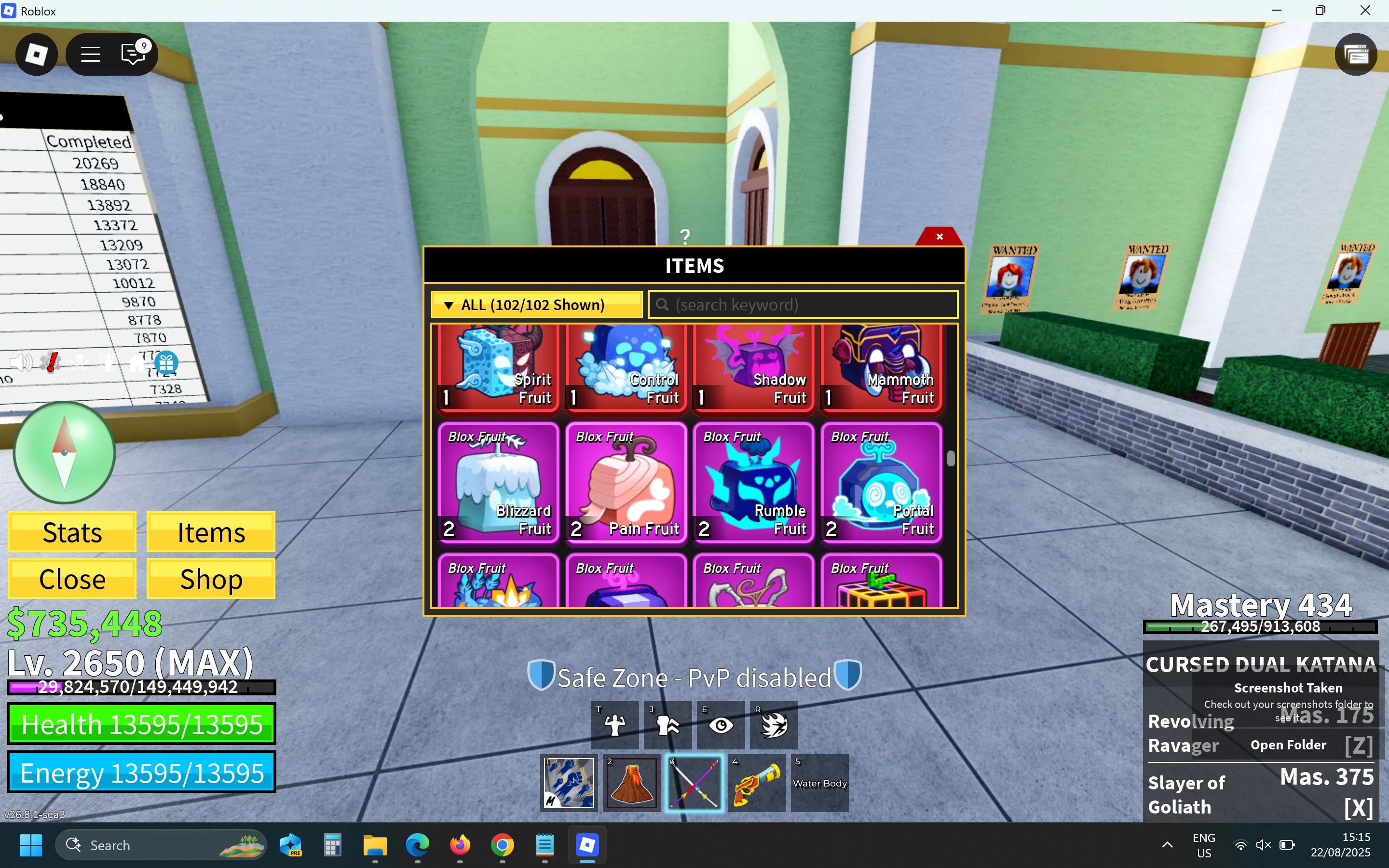 [Instant] Lv2650 / Cursed Dual Katana, Dark Dagger / Permanent: Light, Magma, Buddha / Godhuman / Fruit (inven): 2x Rumble, Spirit, Control, Shadow, Mammoth | Blox Fruits | Avatar: Katakuri Scarf