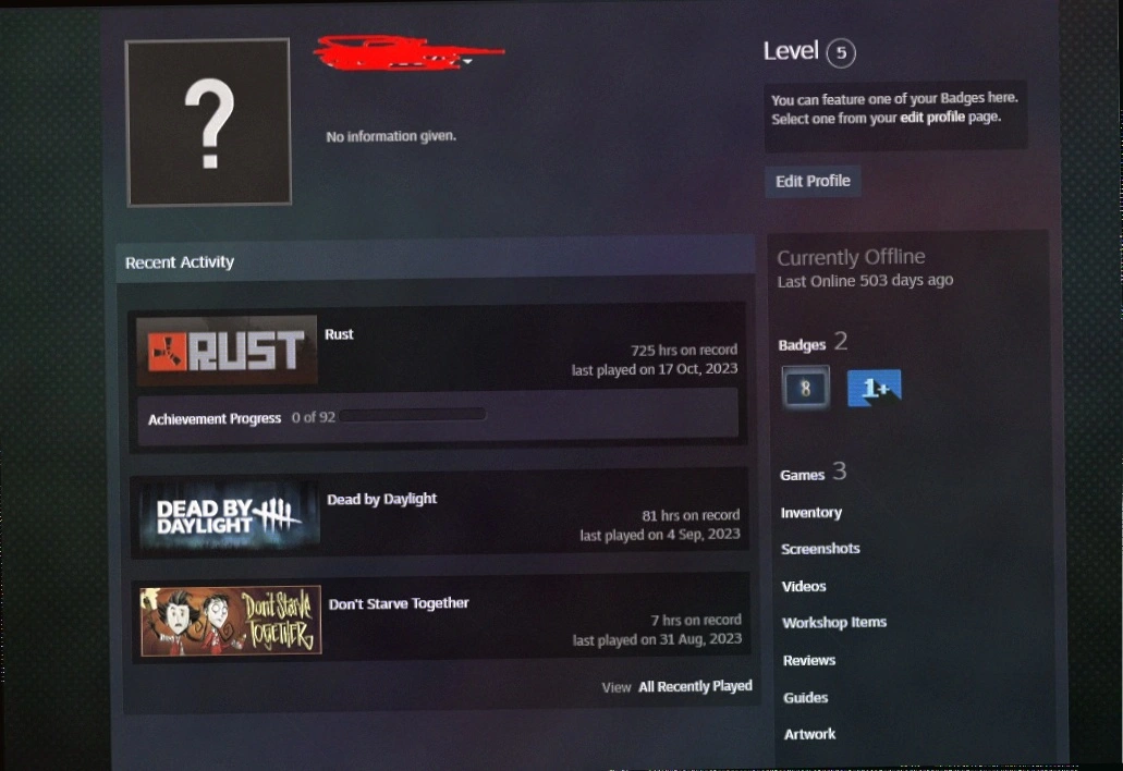8 Years old Steam+5 LVL+RUST with 700+ AFK HOURS+Don't Starve Together Game+Full Access+Instant Delivery 24/7 #CODE-168836