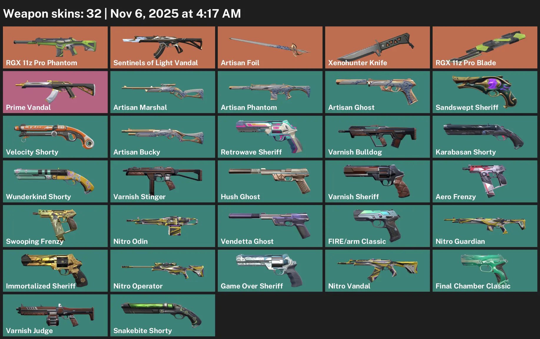 AP | 32 Skins | exp DIAMOND 1 | RGX 11z Pro Blade | Xenohunter Knife | Prime Vandal | Sentinels of Light Vandal | RGX 11z Pro Phantom | S4G