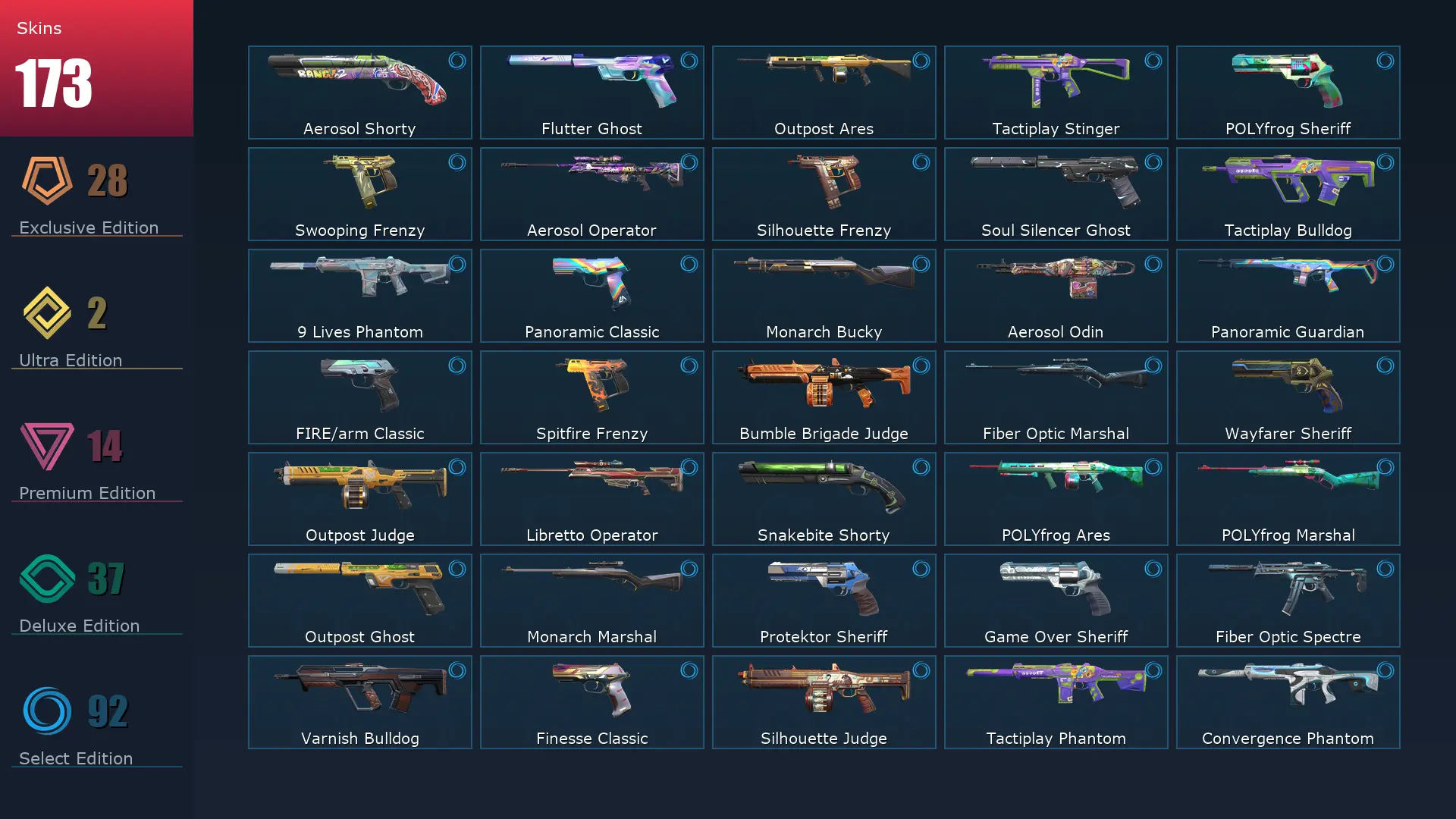 EU 🏣 173 Skins 🚣♀️ 25 Agents 🫴 439 Level 📐 VCT LOCK//IN Misericórdia 🫒 Champions 2022 Phantom 🛬 Champions 2023 Vandal 🌴 Power Fist 🛏 Reaver Knife 🛌 Glitchpop Odin ⚓️ Shimmer Classic 🖼 Prime//2.0 Frenzy 🌵 Prime Guardian 📗 Origin Vandal