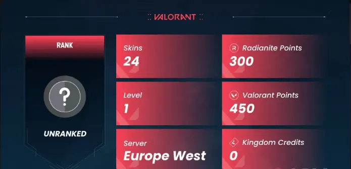 EU / VALORANT 24 skins / +lol 92 skins Europe West / 249 LVL mssh1143