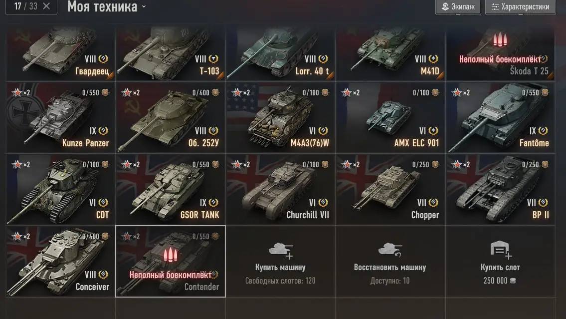 WOT10 Server (WG) Account type With battles Battles 43000 Winrate % 51 Personal rating 1 WN8 1 11 Tier X Tanks Premium Tanks 6,900,000 Silver 2,200 Gold 24,900+ Bonds
