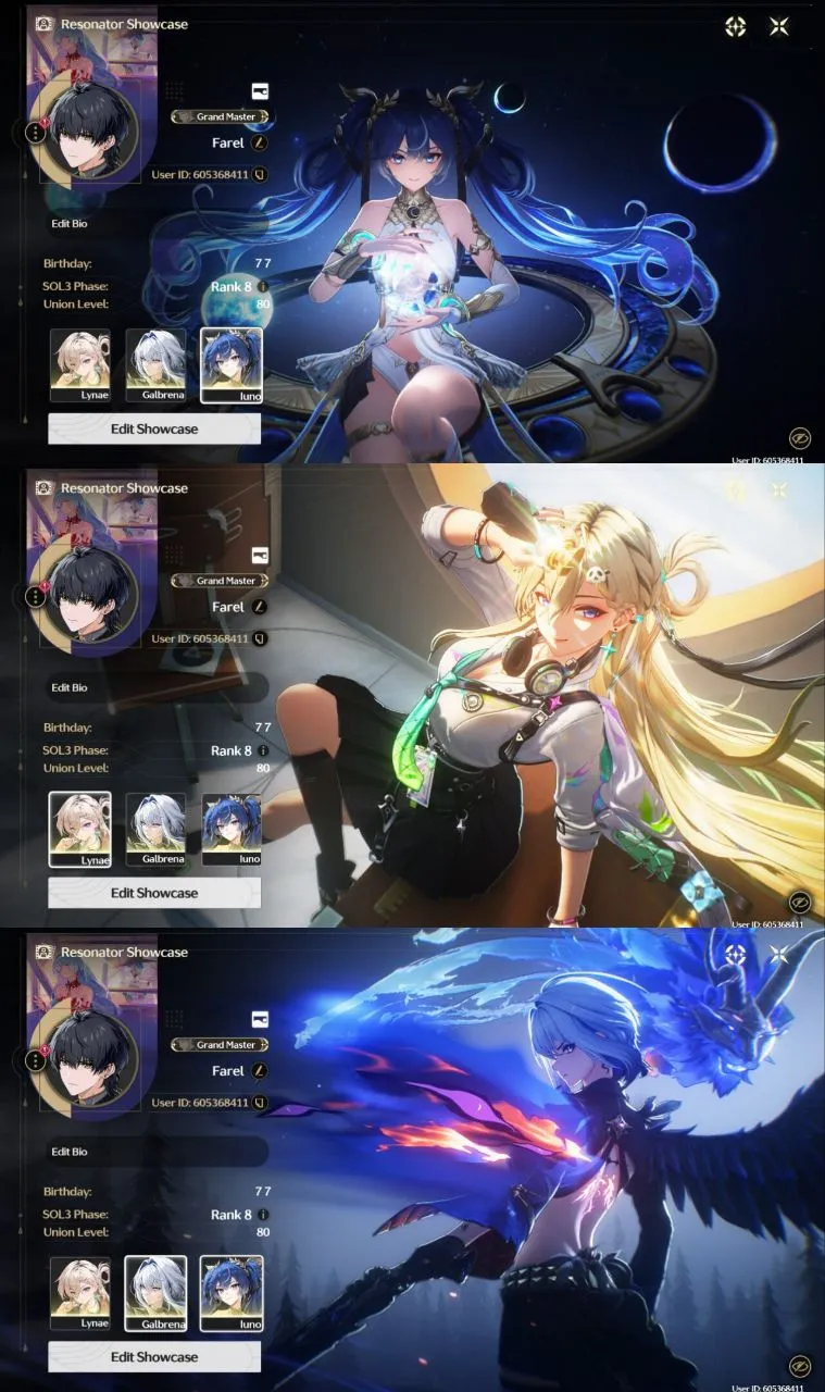 All Platform 🏹 EU 🇪🇺 Union80 💯 21 Character 10 5'Star 💎 11 Weapon 5'Star 🧨 Galbrena 🏆 Lupa 💲 Carlotta 💫 Lynae 🎯 Iuno 🌹 Code1231