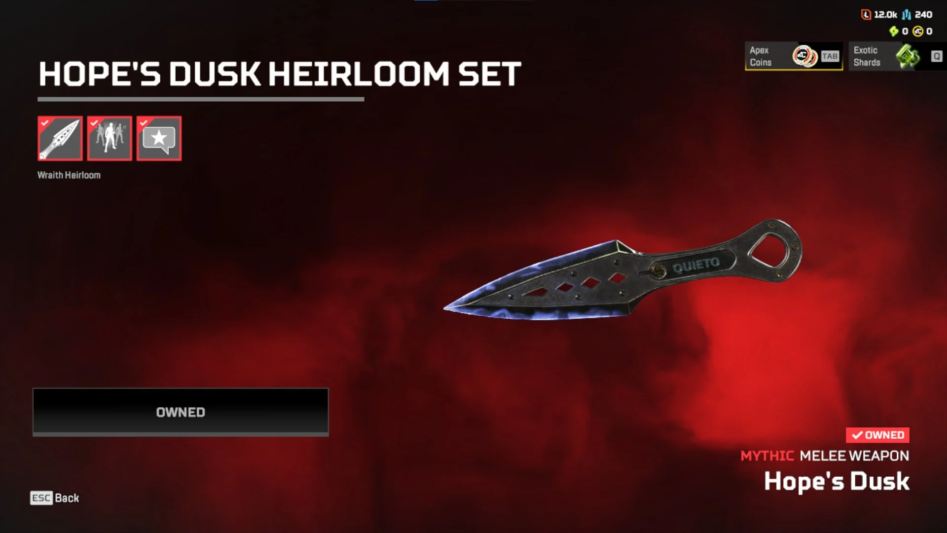 AP486 //Wraith RELICS Hope's Dusk Heirloom | Rookie Rank | Level 22 (K)