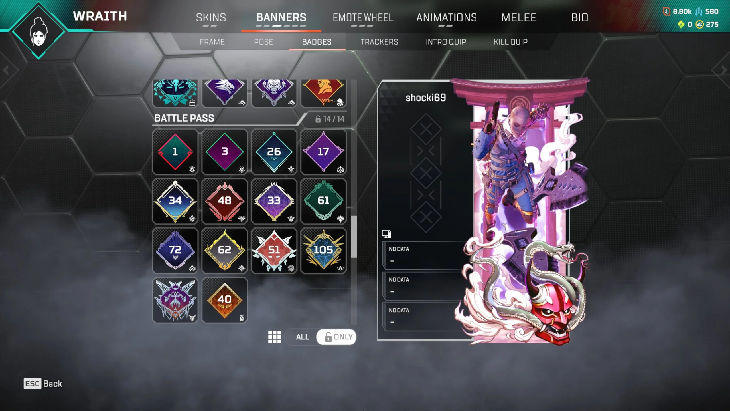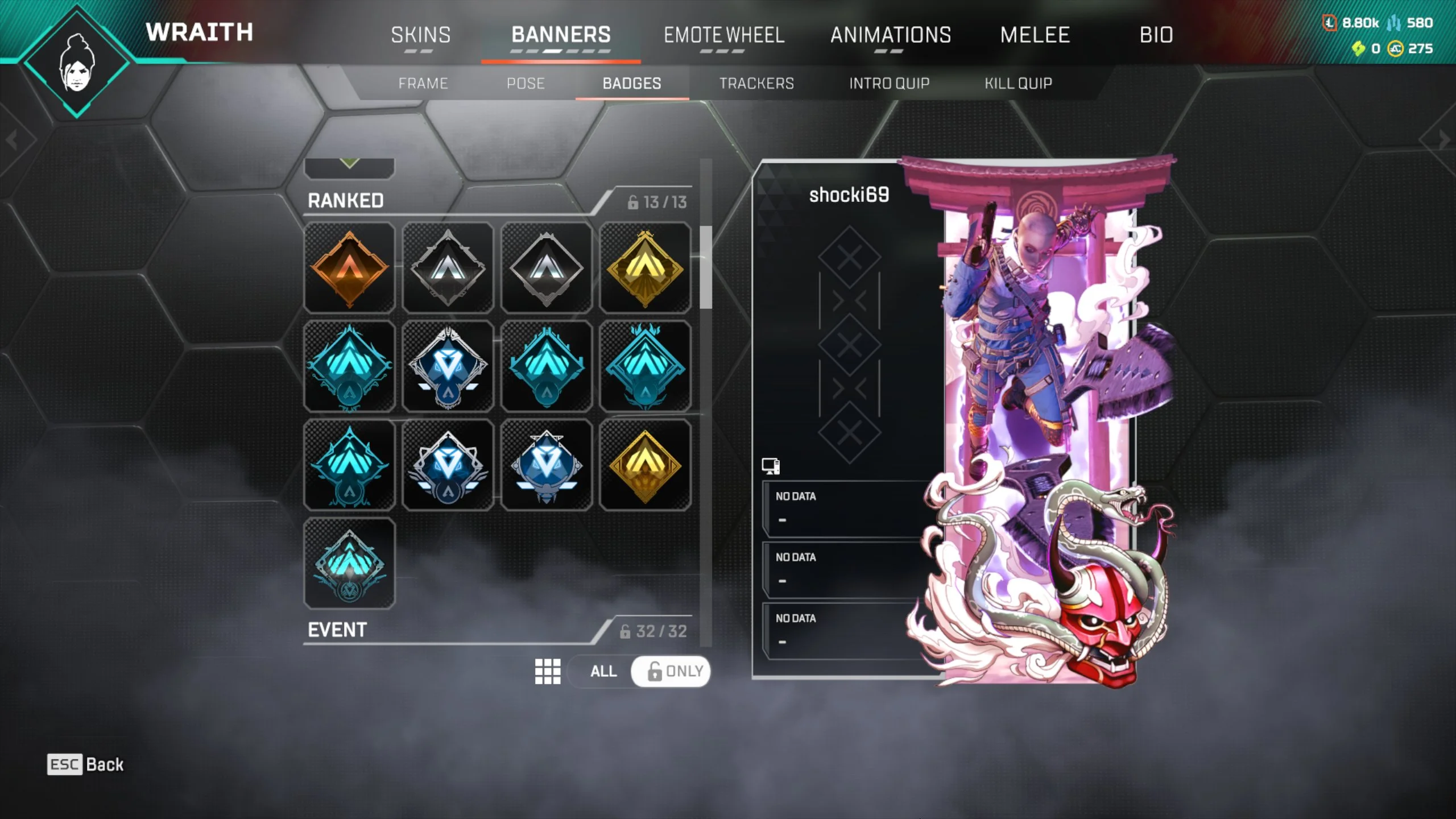 Apex Legends ⸱ Wraith Heirloom Kunai | Level 346 | 20+ Legendary Skins | Rank Ready(#S51511297f)