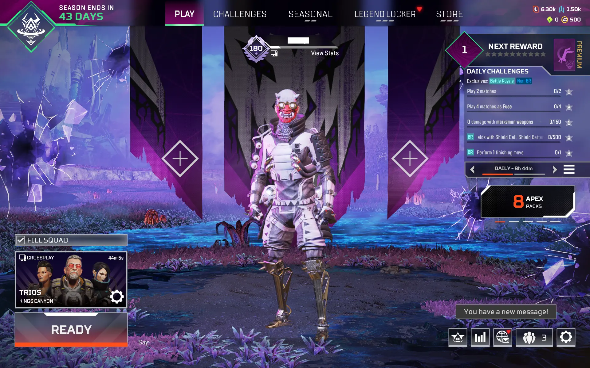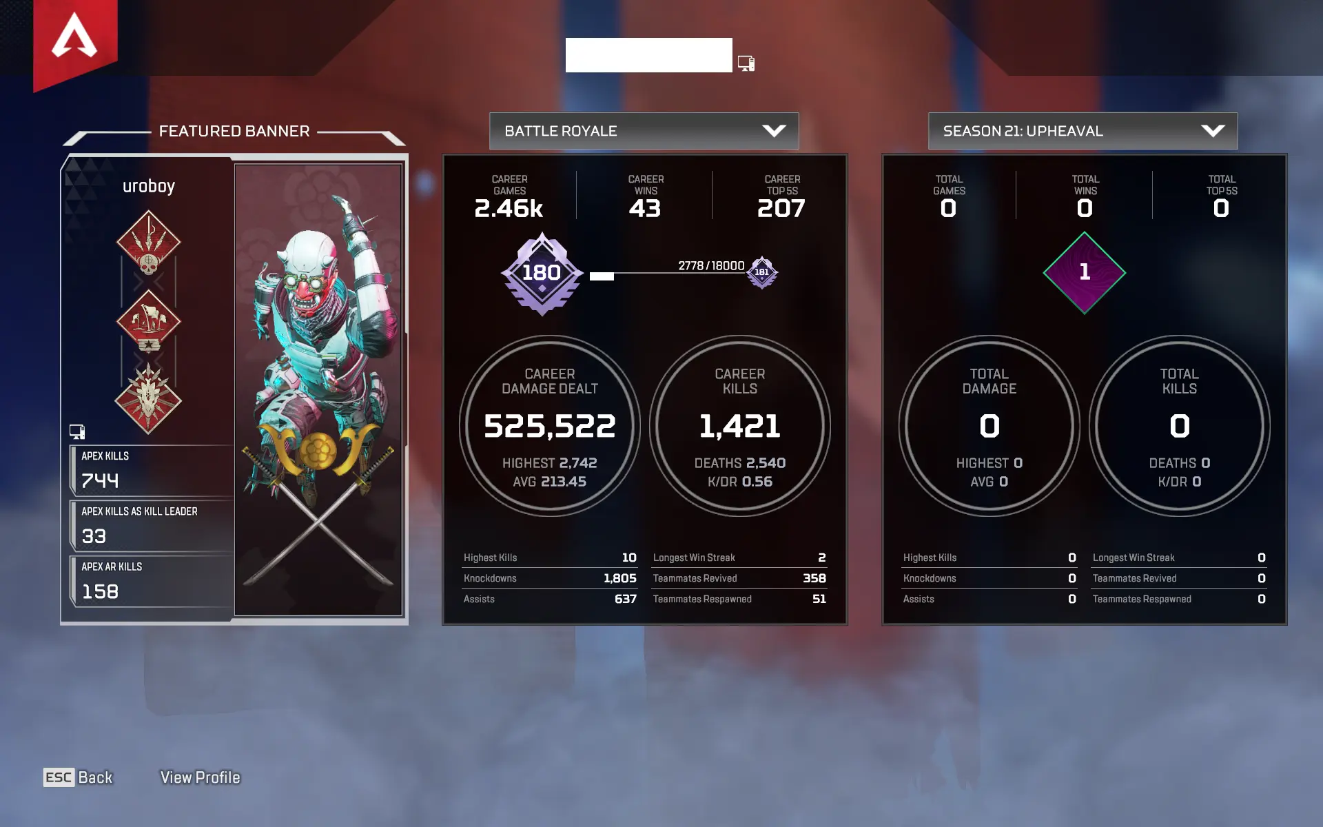 🔵 LVL 180 🟡 89 Legends Skins 🟢 201 Weapons Skins ⚪️ 37 Charms ☑️ Full Access