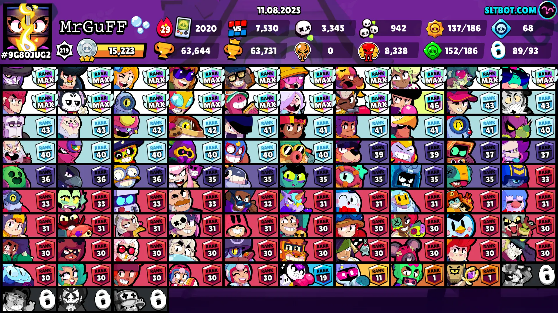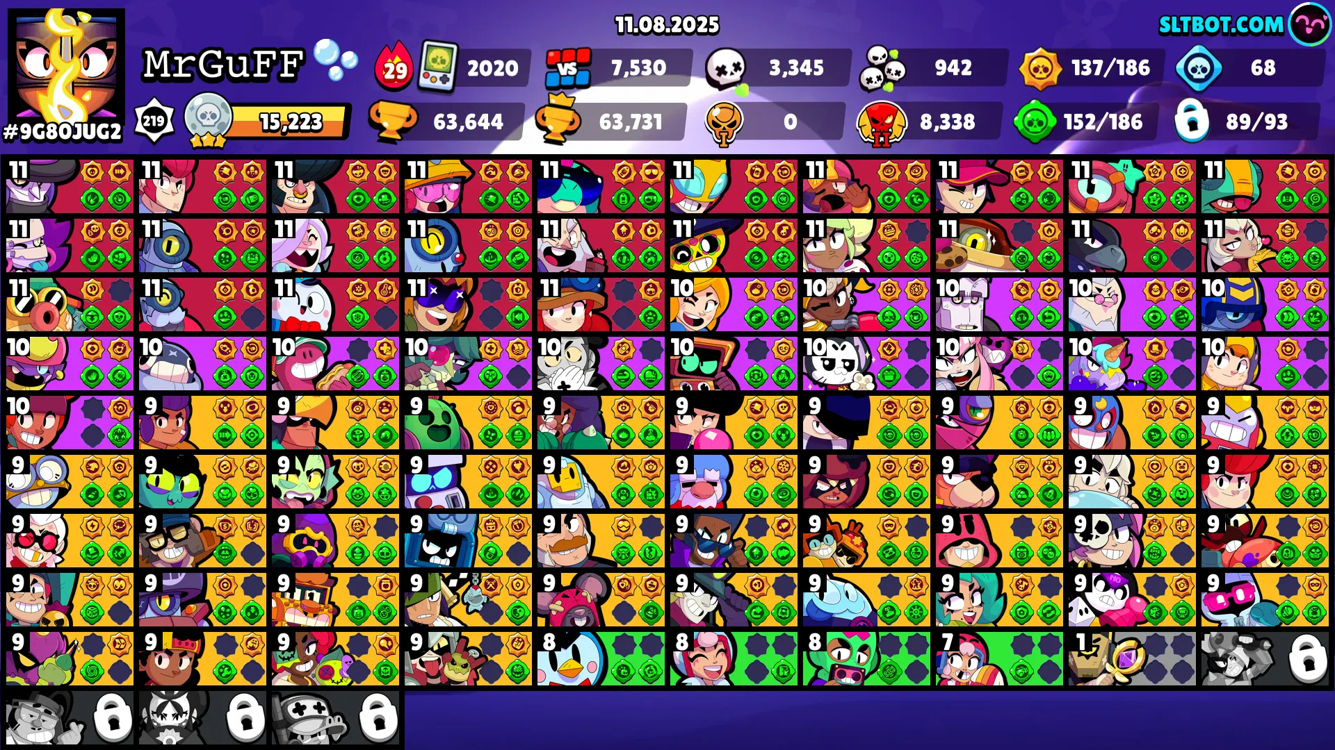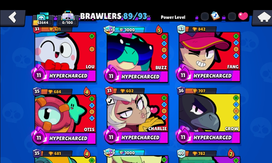 11.11 PIN ⭐ 243 SKINS ⭐ 63.600 TROPHY ⭐ 89 BRAWLERS ⭐ 25 MAX ⭐ 19 HYPERCHARGED ⭐ KITBOXER ⭐ BELLE GOLDHAND ⭐ CHAINSAW BUSTER ⭐ KONG SURGE ⭐ OCTO FANG ⭐ DARK LORD SPIKE ⭐ LEGENDARY ⭐ LEON