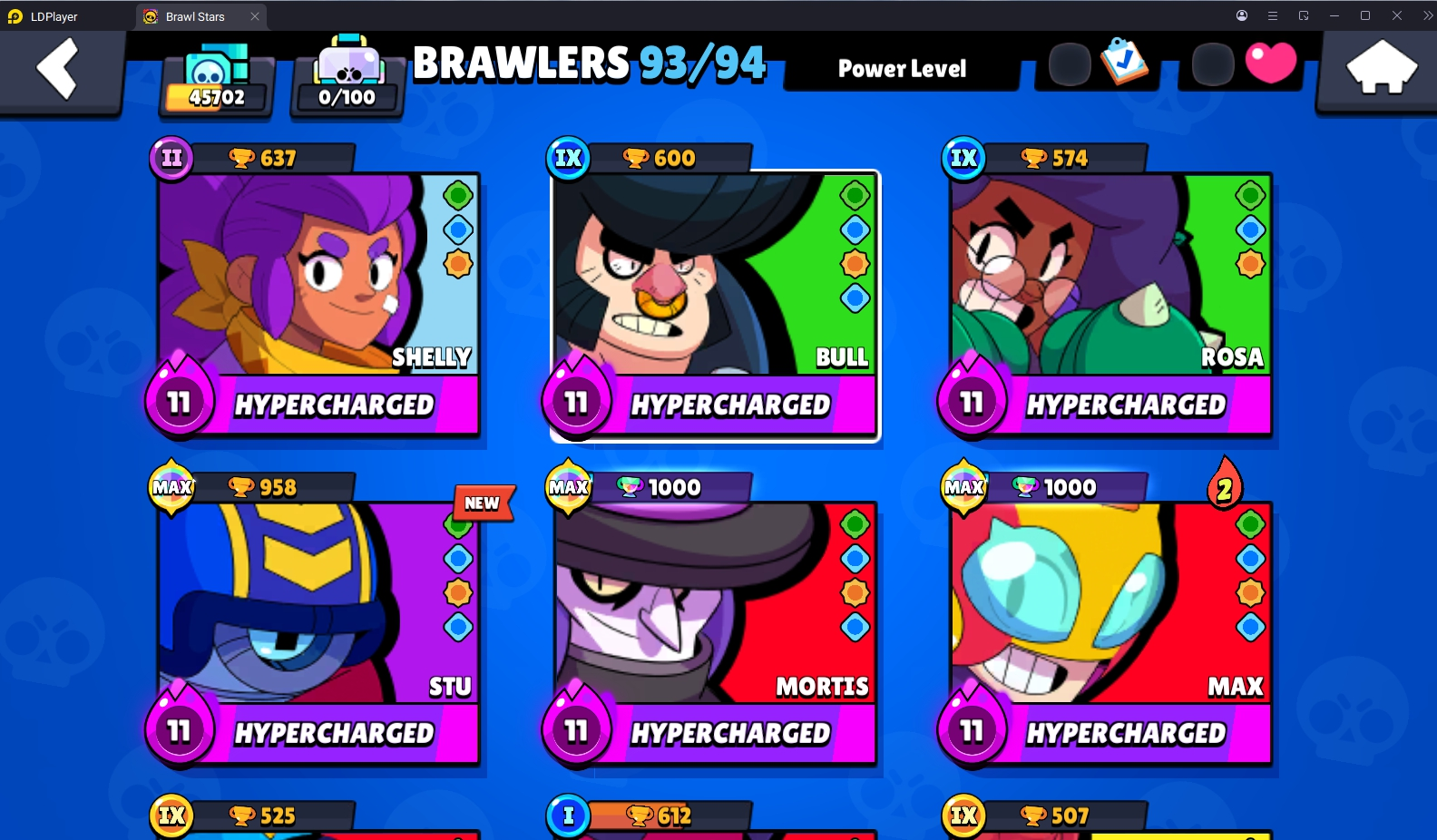 193 SKINS 💯 45.702 TROPHIES 🏆 93 BRAWLERS 🐼 10 HYPERCHARGED 🩸 19 MAX BRAWLERS 💛 NIGHT MECHA CROW 🧡 CURSED KENJI 🧡 GUARD RICO 🧡 SPACE OX BULL 🧡 IMPIE COLETTE 💯