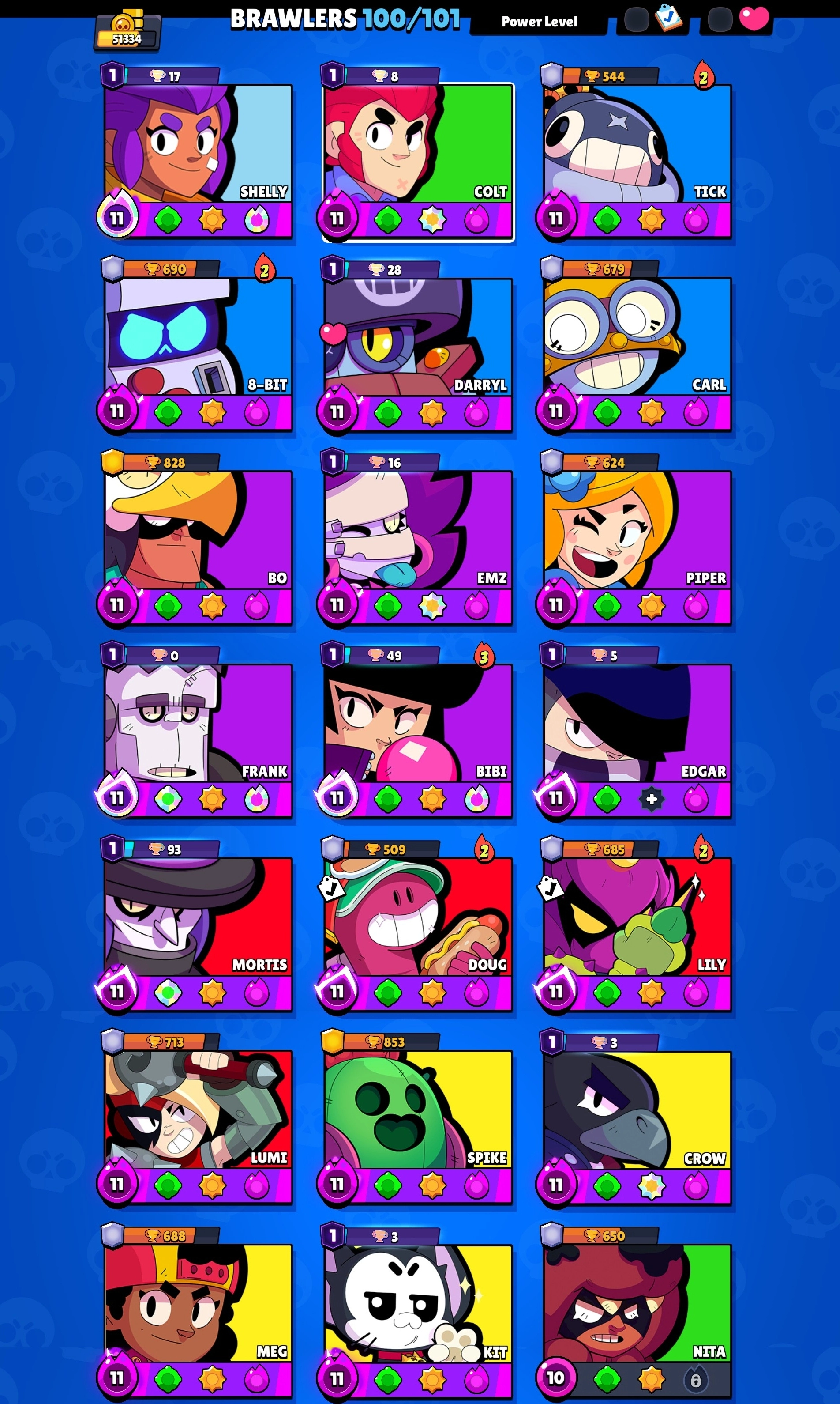 51k TROPHY, 100 BRAWLERS [20 Maxed + 50 Hypercharged UNLOCK] 259 Skins, 11 Prestige, 8 Bluffies | Made in 2024 Year, 4K Matches Played | VR409