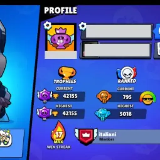 👑 79 Brawlers 👑 42.155 Trophies 👑 85 Skins 👑 8 Legends 👑 26 Mythics 👑 26 Epics 👑 6219 Gold 👑 74 Gems 👑 810 Blings 👑