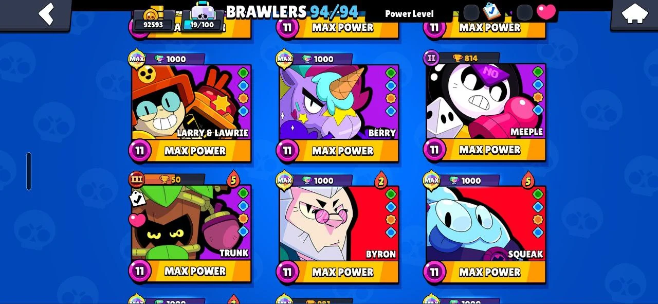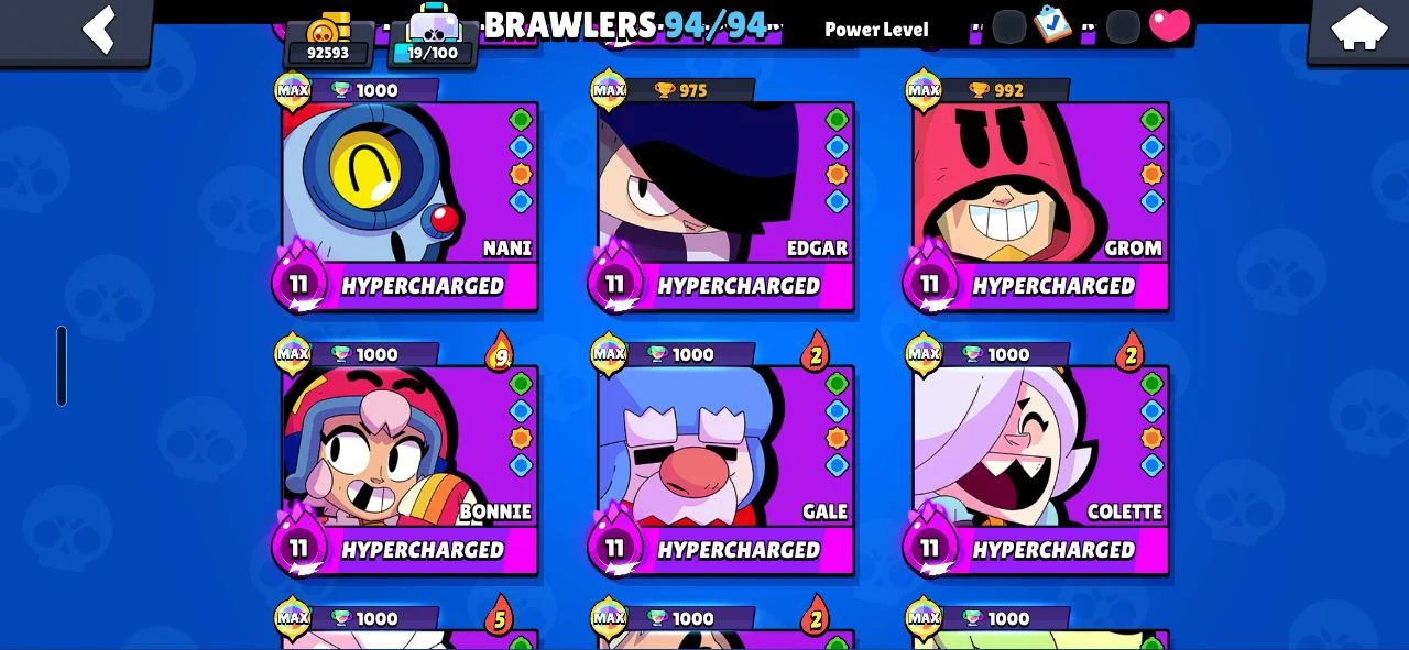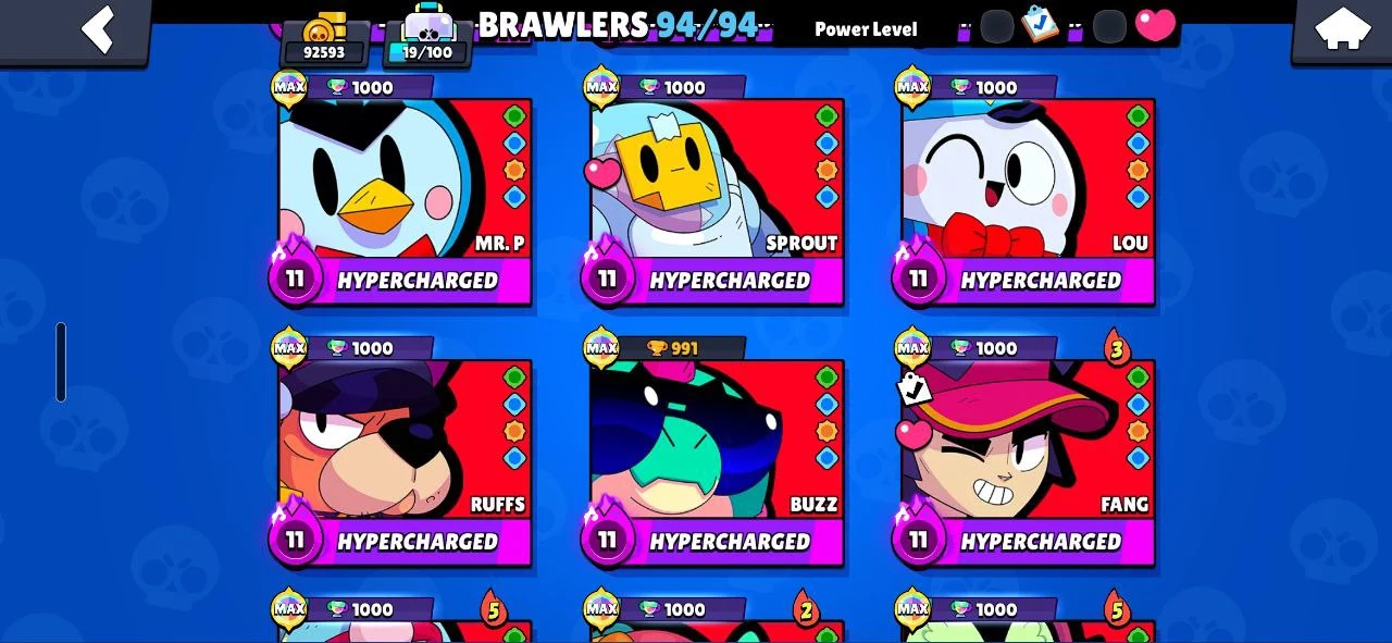 β¨οΈ (RAREST) 92600 TROPHIES π R35 PIN π MASTERS RANKED π― 320 OG SKINS π ALL 94 BRAWLERS MAXED πͺ 54 HYPERCHARGED π SOLAR FAME βοΈ BELLE GOLDHAND π FURIOUS FANG βοΈ DUMPLING DARRYL π HEADLESS STU π WHITE WOLF LEON π₯ CHEAPEST β