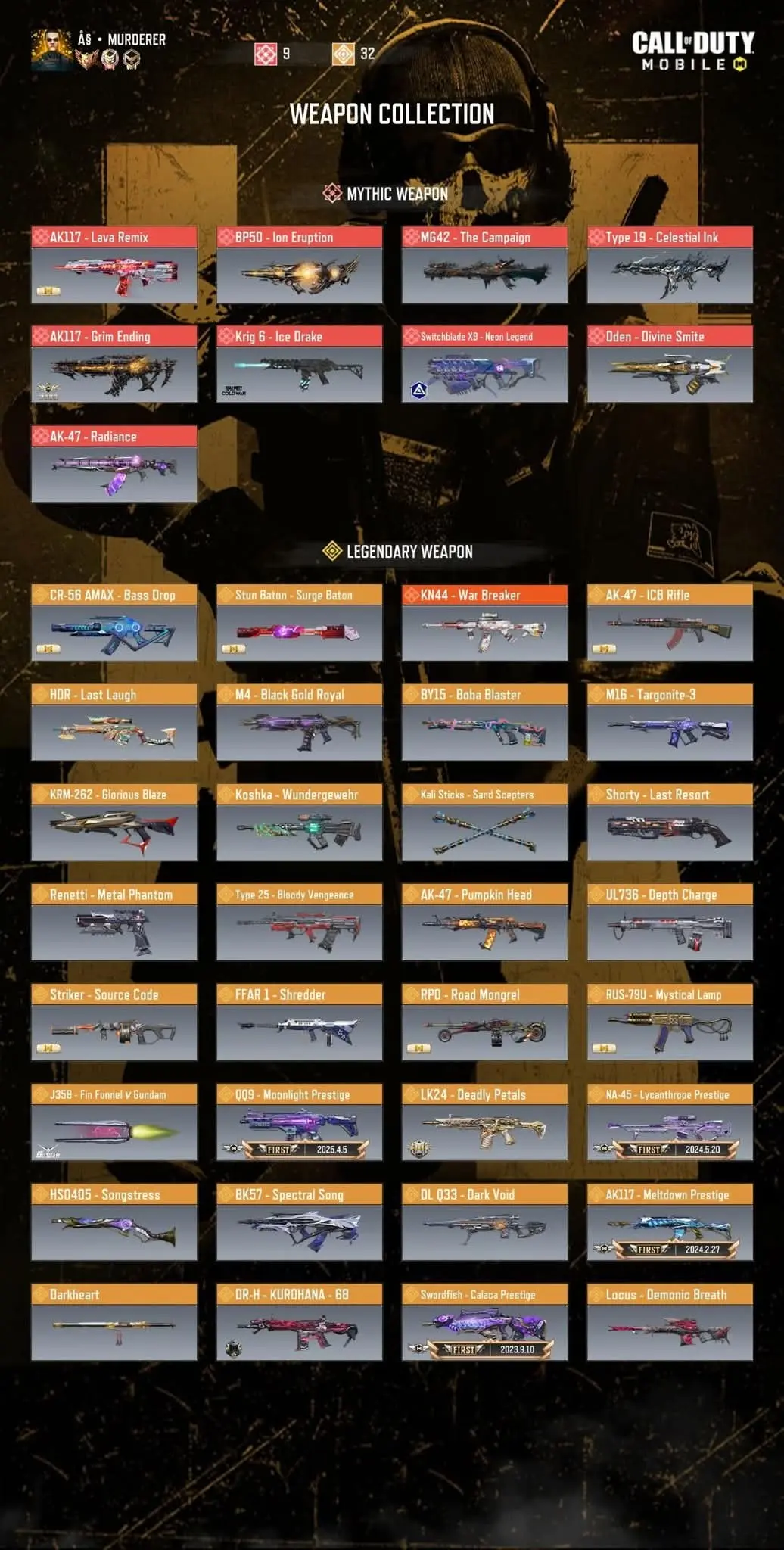 OG Skins 🔶️ 9 Mythic 32 Legendary 🔶️ Rare Old Skins 🔶️ Motoko Ghost 🔶️ 30x Legendary Stats 🔶️ 10 CP Spins 🔶️ Activision Only