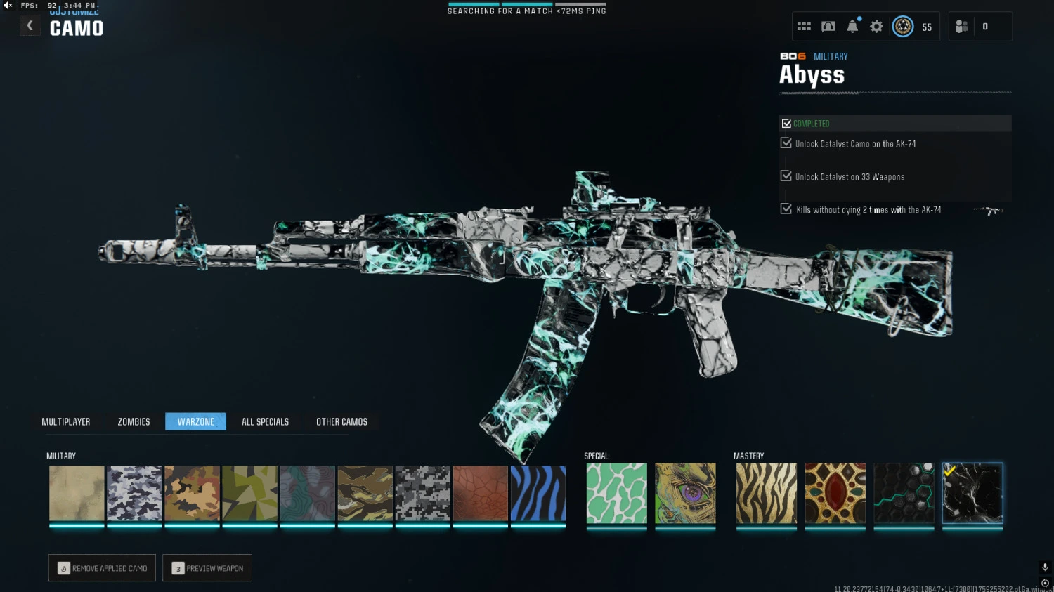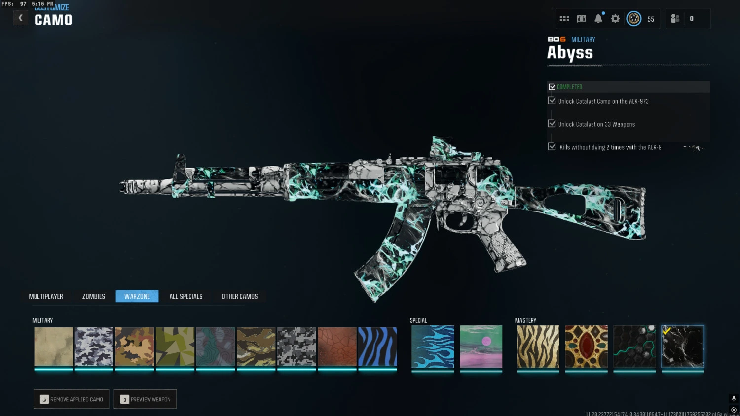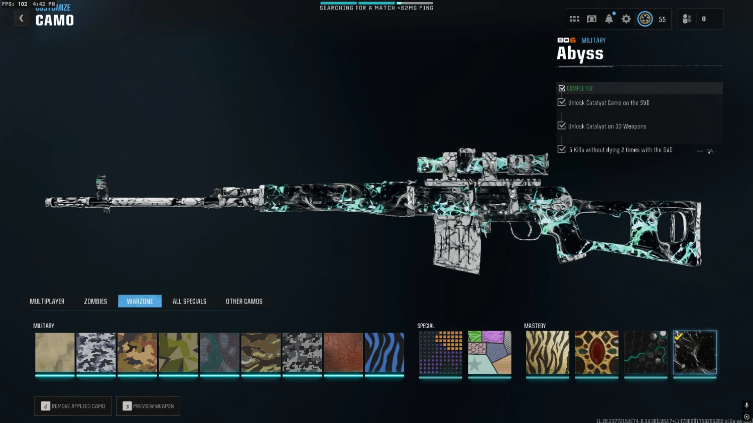【 Bo6 ⸱】 Abyss Camo Unlocked Include meta guns 🔥️ Level 55 🔥 Ready for ranked 🔥 Handmade 🔥No cheats used 🔥 Linkable to all platforms 🔥
